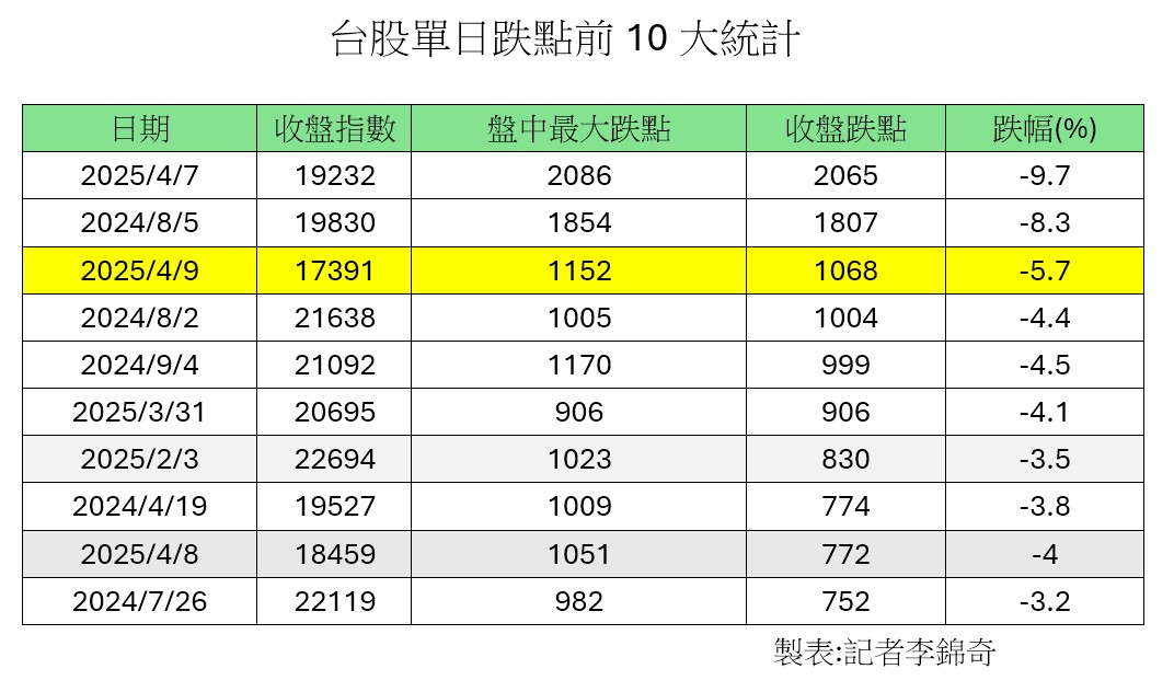 國安基金昨晚宣布啟動執行市場安定任務,是歷來第9次護盤,也是史上最高指數位置啟動護盤,不過,美股開高走低,日韓股市今天再度走跌,台股即便有國安基金護盤題材,盤中一度拉抬,跌點收斂到百點以內,但隨著賣壓湧現,行情一路下殺,最低來到1萬7306點,大跌1152點,收盤下跌1068點,跌幅5.7%,是史上第三大單日跌點與跌幅。