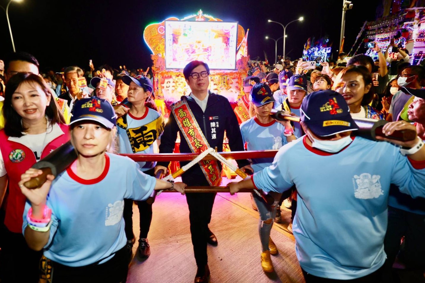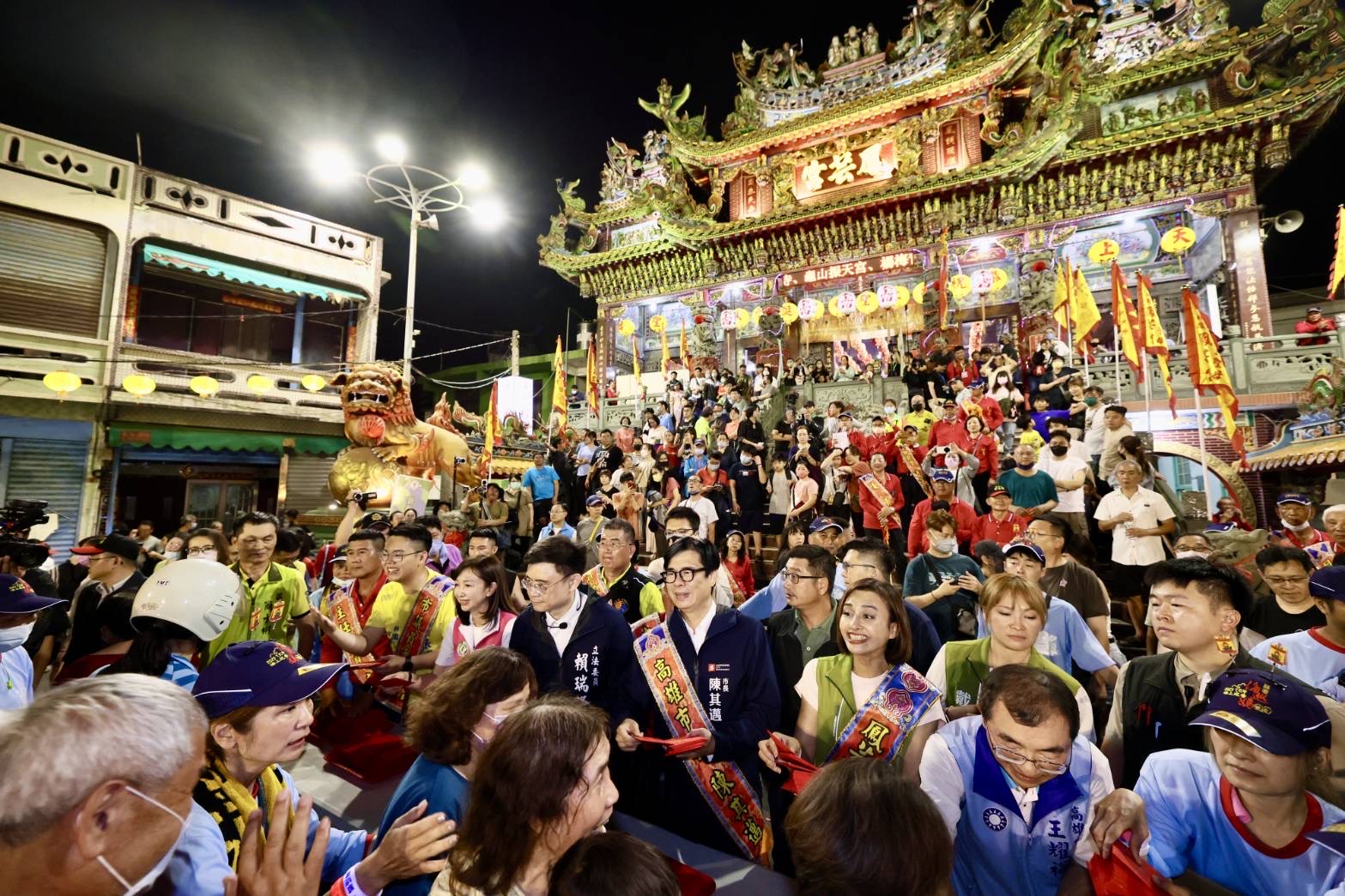 ↑圖說:「林園鳳芸宮媽祖海巡」進入尾聲,陳其邁親臨扶轎回宮並出席媽祖回鑾安座儀式。(圖片來源:高雄市政府提供)