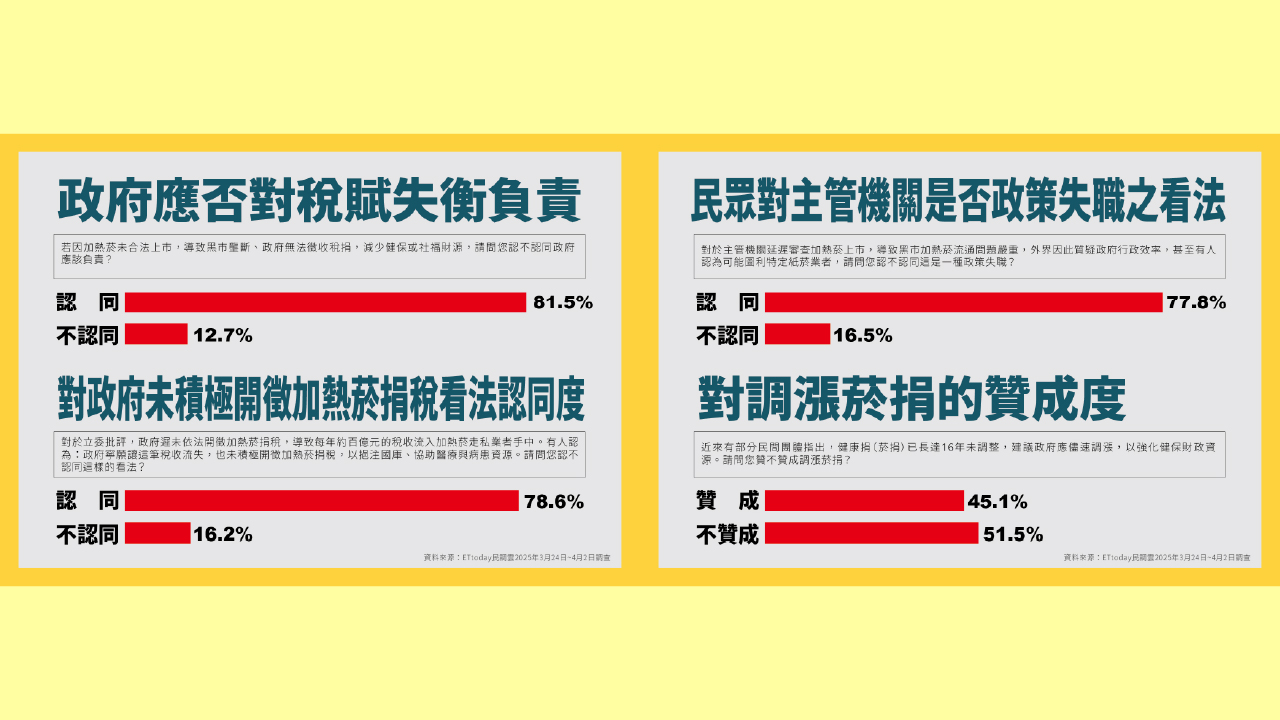 《ETtoday》民調:稅負不公引民怨 吸菸者籲政府改革菸捐政策、合法徵收加熱菸稅