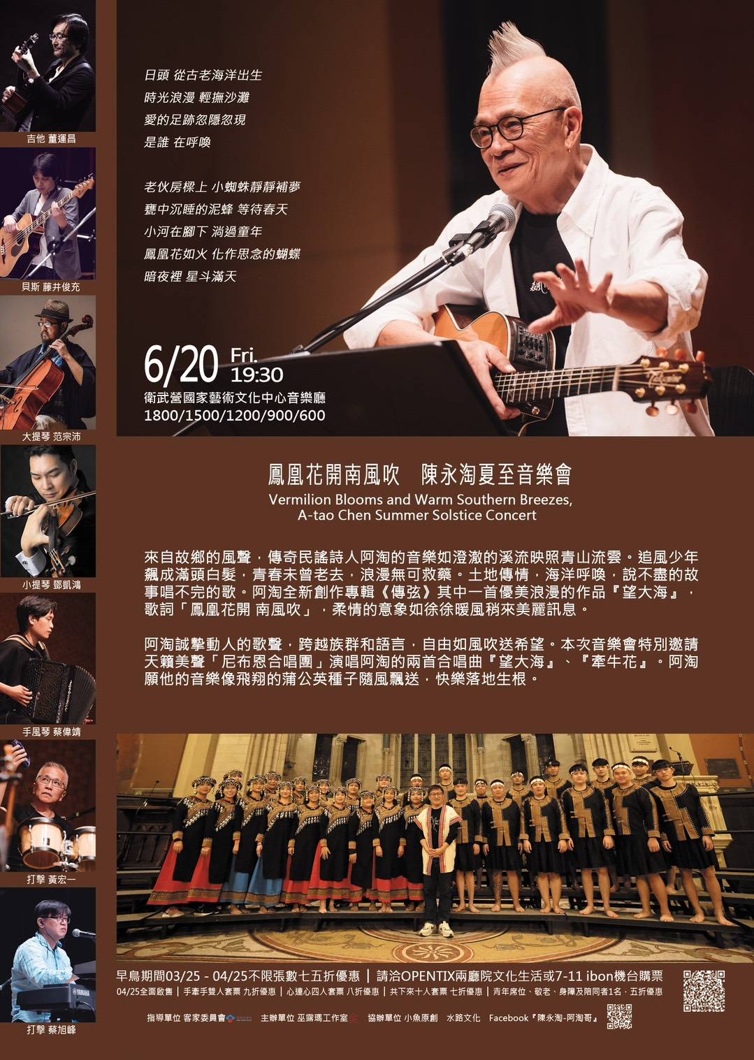 ↑圖說:「鳳凰花開南風吹—陳永淘夏至音樂會」6月20日將於衛武營音樂廳登場(圖片來源:高雄市客委會提供)
