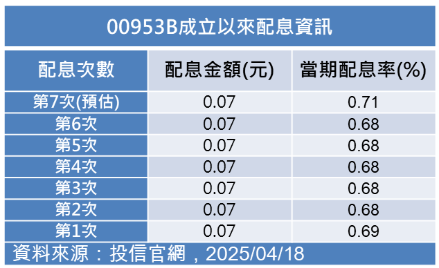 00953B五月除息維持0.07元!年化配息率8.4% 想領息最晚這天買
