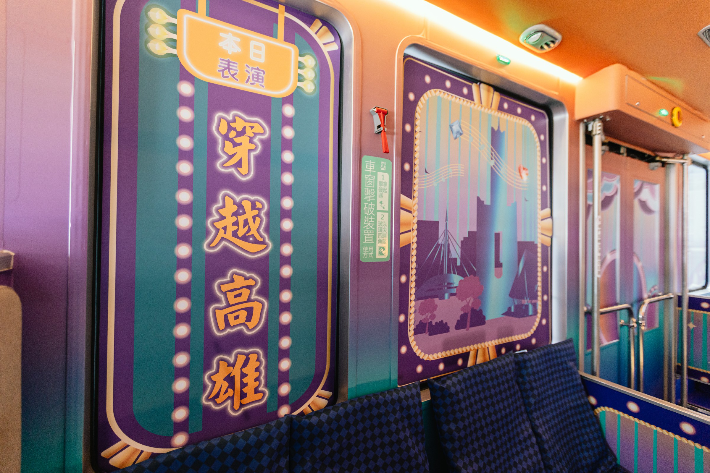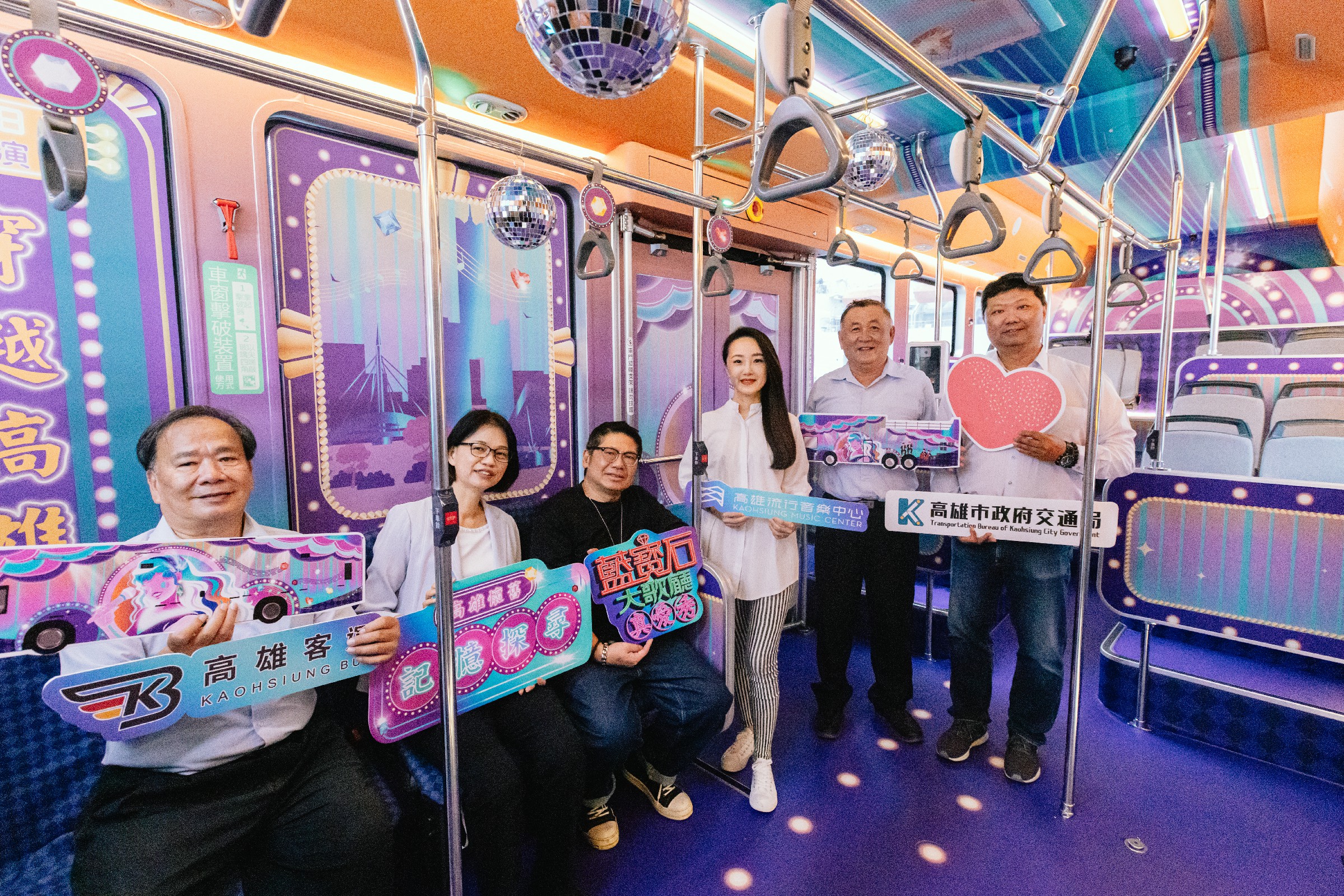↑圖說:懷舊主題公車以高雄早期秀場風格進行車體設計,車內繽紛懷舊氛圍,讓人彷彿置身時代歌舞秀。(圖片來源:高雄市交通局提供)