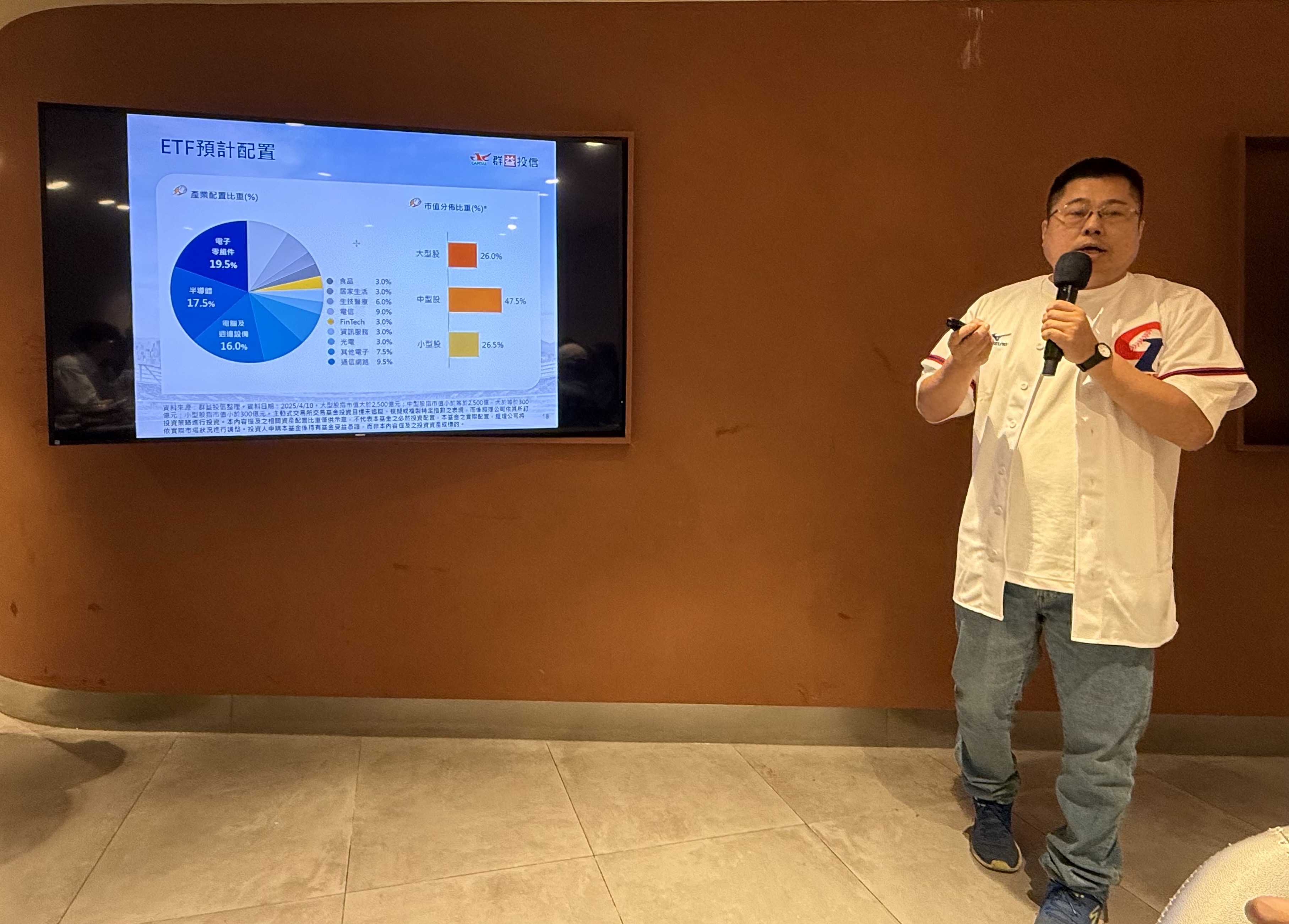 陳沅易(如下圖,記者李錦奇攝影)表示,看好AI、IC先進封裝、數位金融(第三方行動支付),但預計配置不只聚焦電子股,對金融及傳產股也有著墨;市值分佈上,不會只以大型股為主,也會同步掌握中小型股潛力成長契機,初估中型股占比47.5%最高。