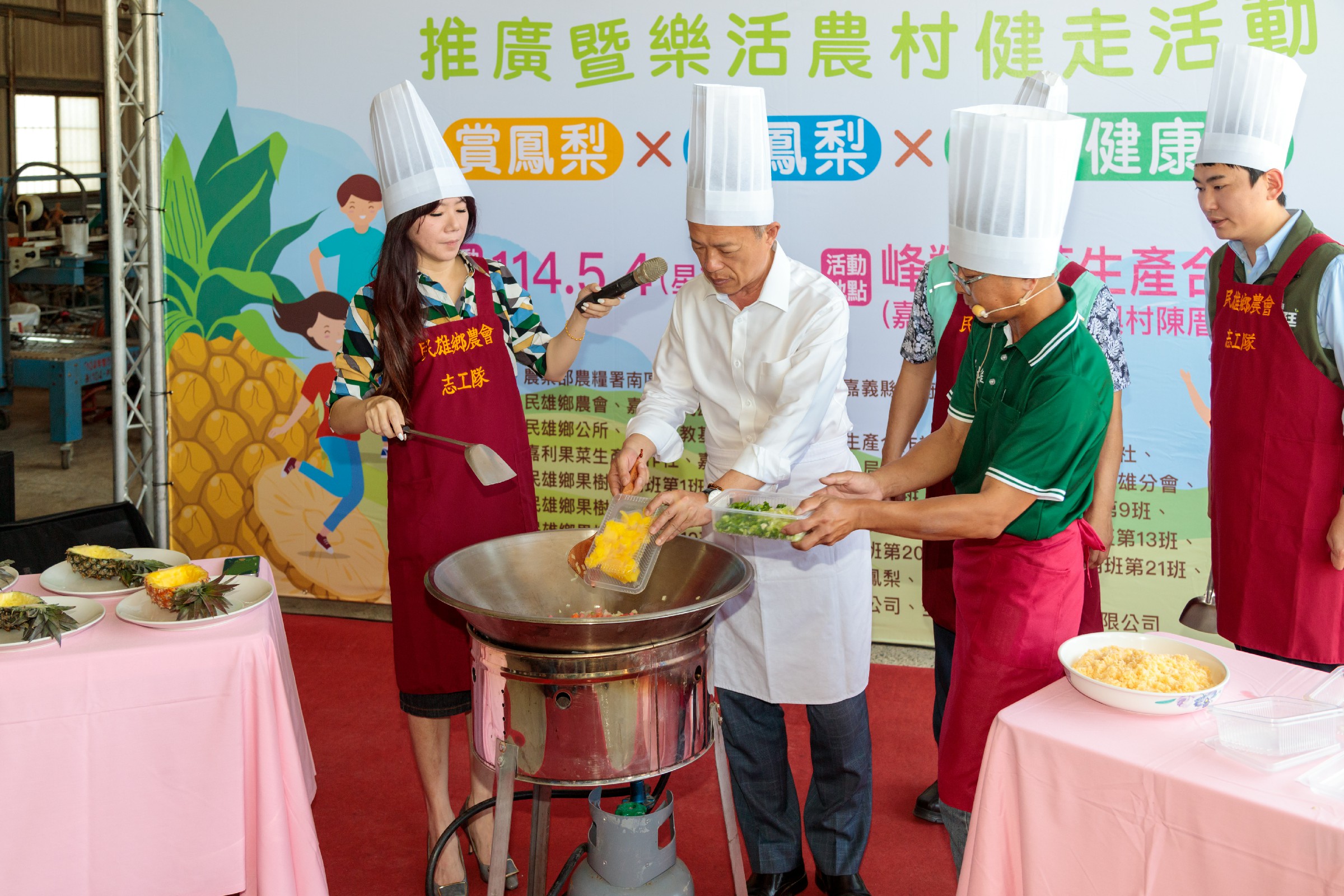 ↑圖說:翁章梁下廚製作鳳梨炒飯,展現鳳梨入菜的多元美味。(圖片來源:嘉義縣農業處提供)
