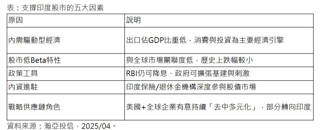 林庭樟說,在未來關稅與貿易政策仍存在高度不確定性的全球環境下,印度本身經濟穩定成長與具備多重優勢,預期股市將持續維持韌性表現,中長期為最具吸引力的市場之一。