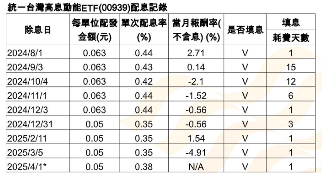 00939過去9次配息,皆完成填息。