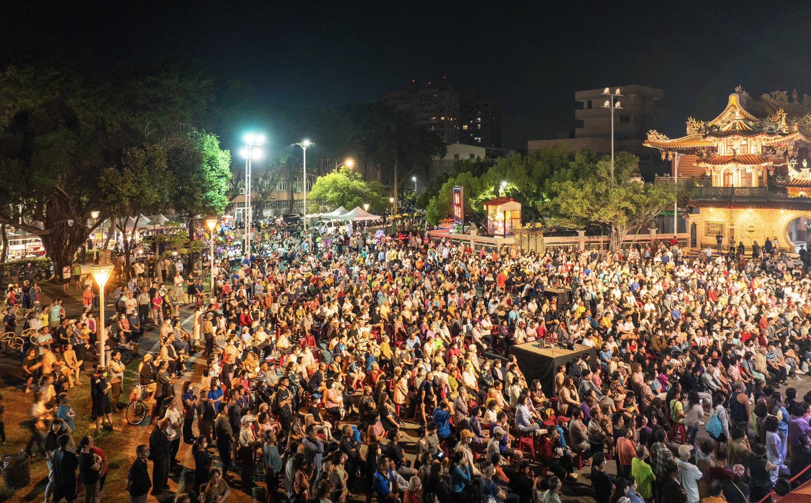 ↑圖說:3000名觀眾湧進壽天宮廟埕,岡山壽天宮搖身一變成為露天大型演唱會場!(圖片來源:許智傑服務處提供)