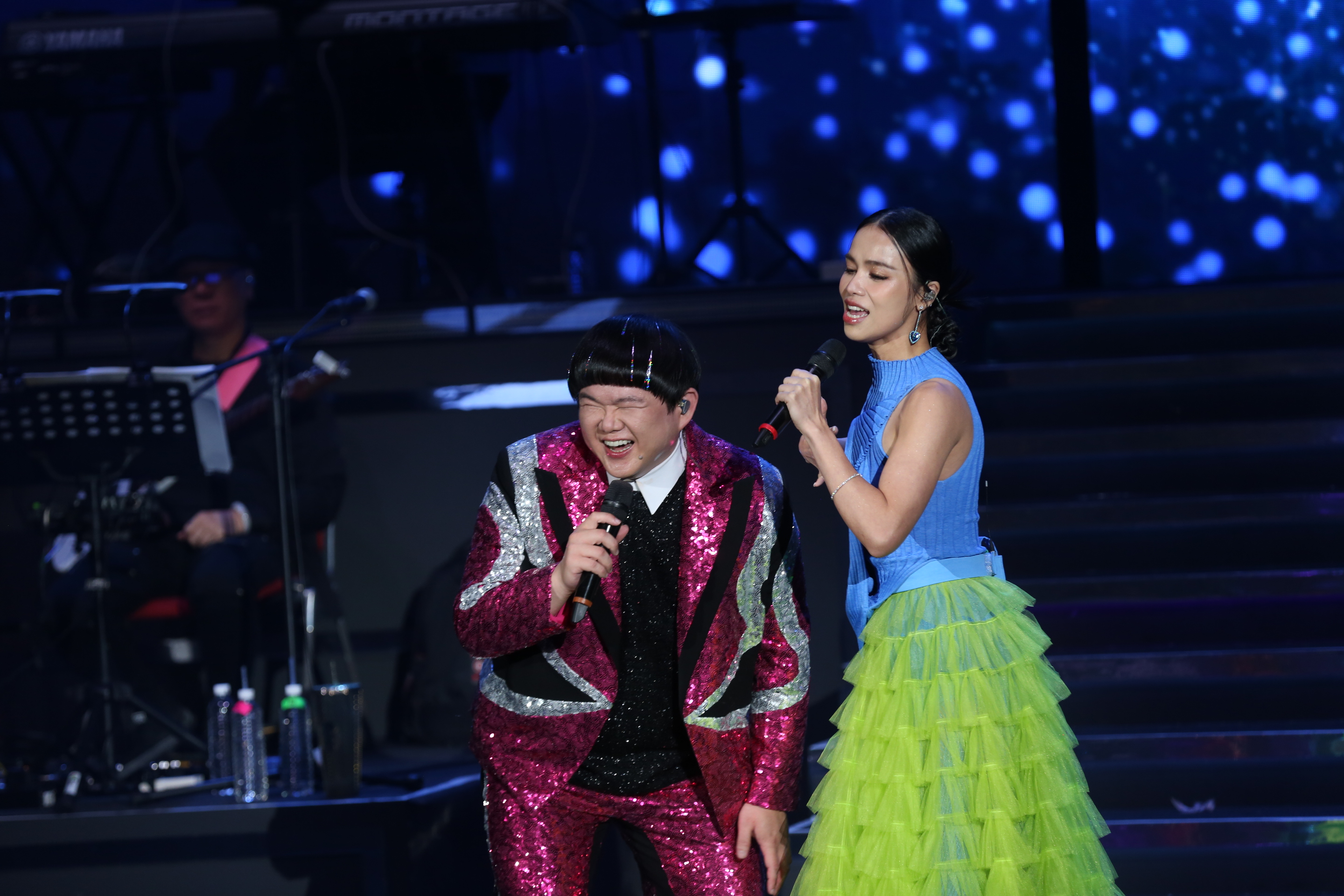 圖說:演唱會特別嘉賓林芯儀與林育羣登台合唱,獲得歌迷熱烈迴響。圖/寶吉祥集團提供