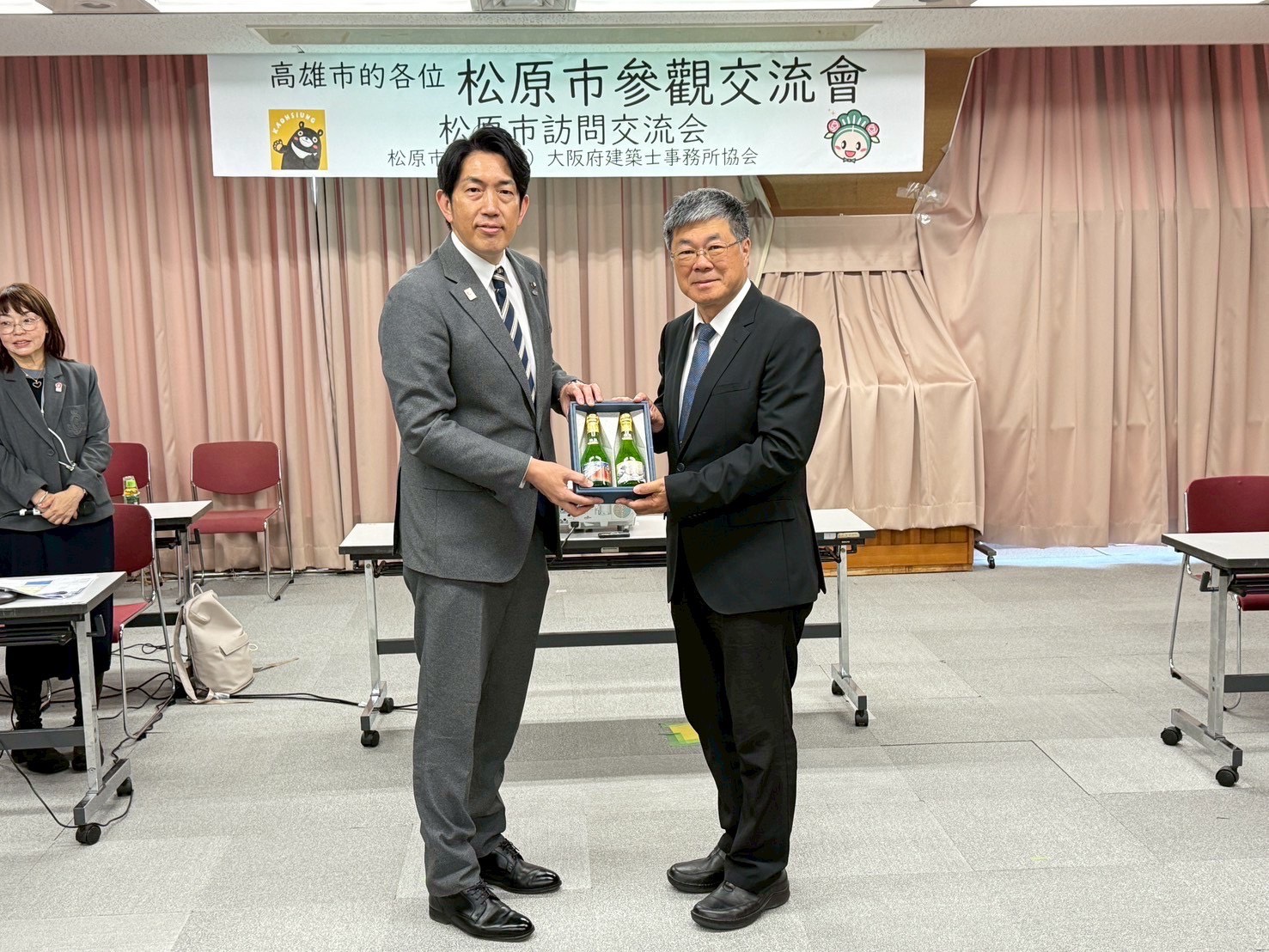 楊欽富在交流中感謝松原市市長澤井宏文及市府團隊熱情接待,雙方互致紀念品,高雄市代表團致贈象徵城市意象的「高雄城市意象托盤」與「高雄熊」,松原市觀光協會亦安排文化建築參訪活動,深化文化與專業領域的連結。後續將推動高雄市行政區與松原市締結姐妹市友好關係,並促成雙方觀光協會簽署交流合作MOU,積極促進台日建築與文化交流。