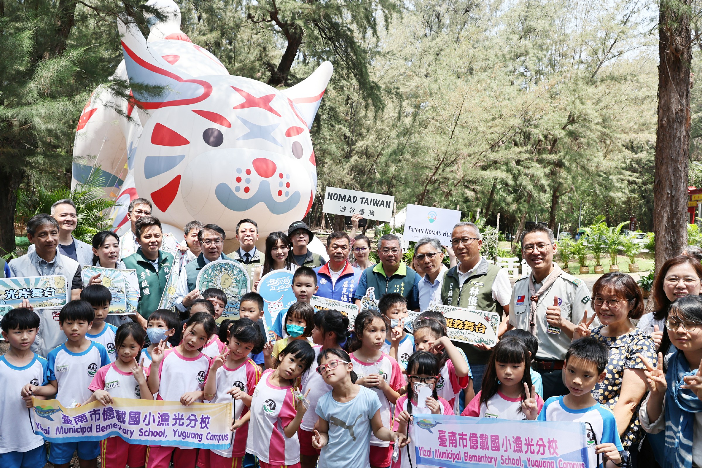 ↑圖說:2025漁光島生活節攜手人氣IP「巷仔Niau」,推出「巷仔Niau × 漁光島森林」充氣藝術裝置,邀請大家走進森林步道,聆聽自然節奏。(圖片來源:臺南市文化局提供)
