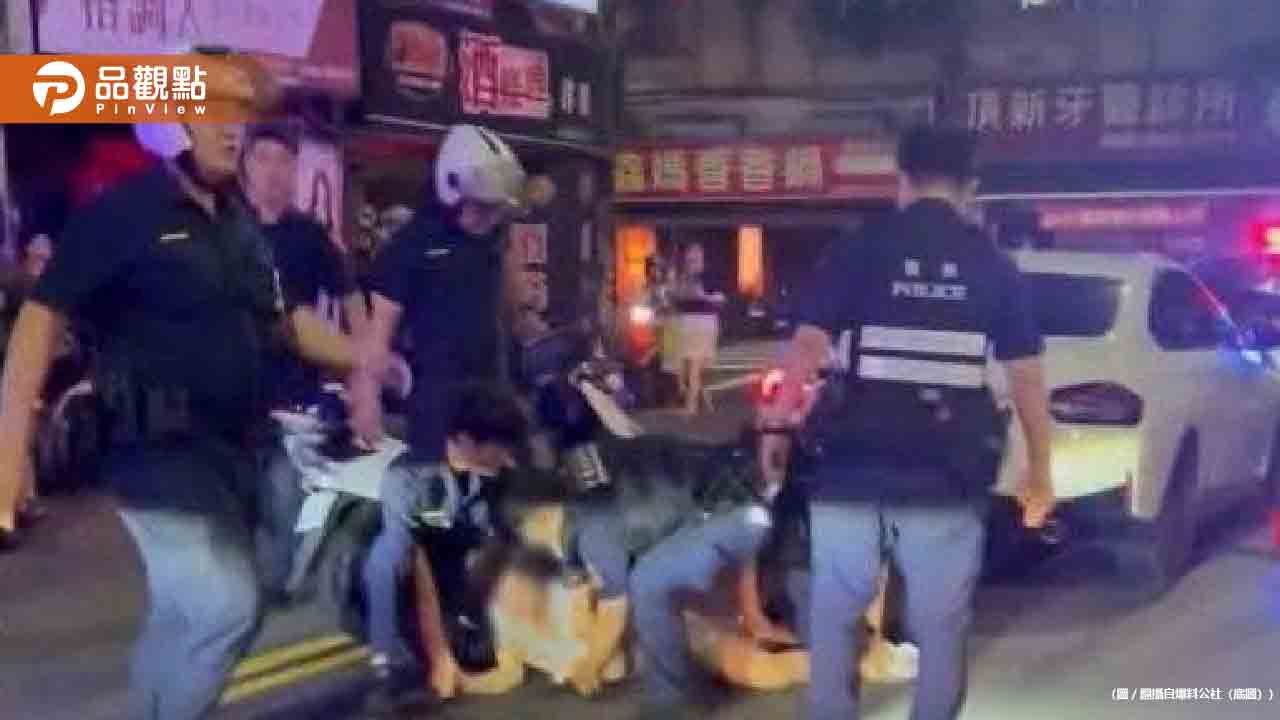 警方隨即持槍喝令洪男下車,並當場將其壓制。在搜查過程中,警方還發現同車的33歲張姓女子趁亂將一支K菸棄置在分隔島上。