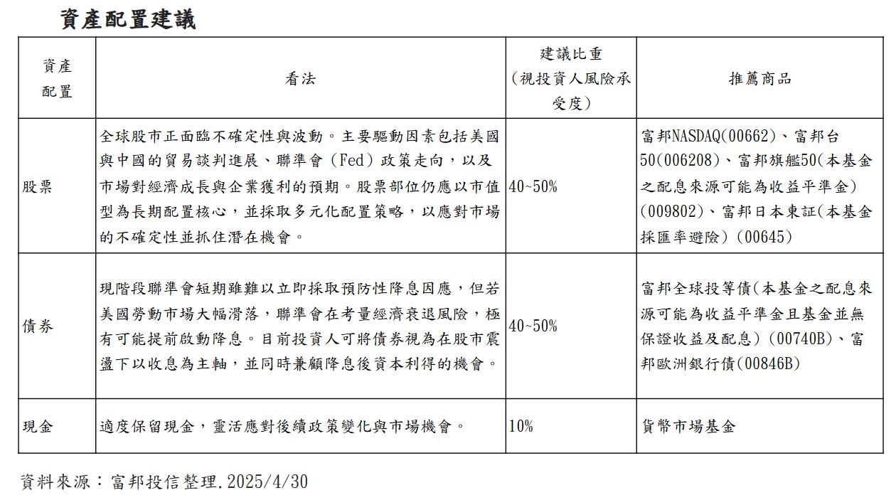 歐洲基本面則有望支持投資市場,加上從4月ECB的政策態度保持高度靈活性,投資人提升對ECB降息揣測OIS市場訂價6月ECB將再次降息一碼,年底前尚有2-3碼空間,有利於歐洲金融市場中長期表現;日本與美國超前的關稅談判進展使外資持續看好日股短期內的反彈走勢,加上日本企業商社的韌性,整體前景不看淡。