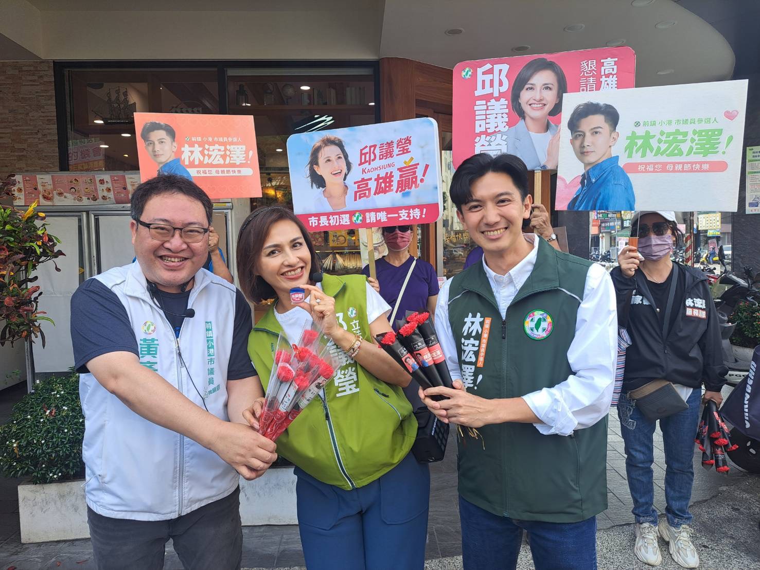 圖說:邱議瑩(左)向市民問好、預祝母親節快樂。(圖片來源:邱議瑩辦公室提供)
