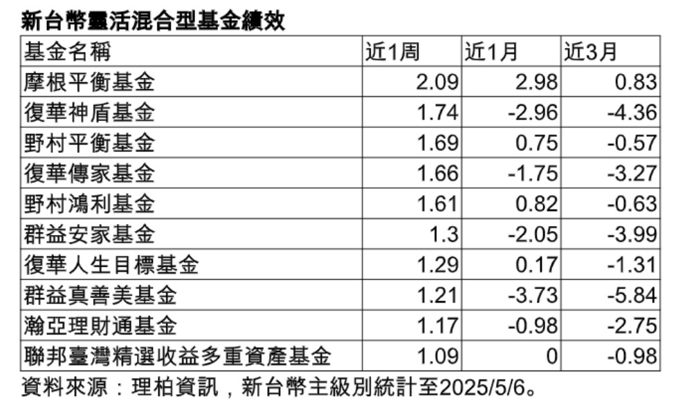 根據理柏資訊統計,新台幣靈活混合型基金類型共有130多檔,標的除了台股及海外平衡型,還包括聚焦區域或全球市場的股債組合平衡型,以及多重資產型。