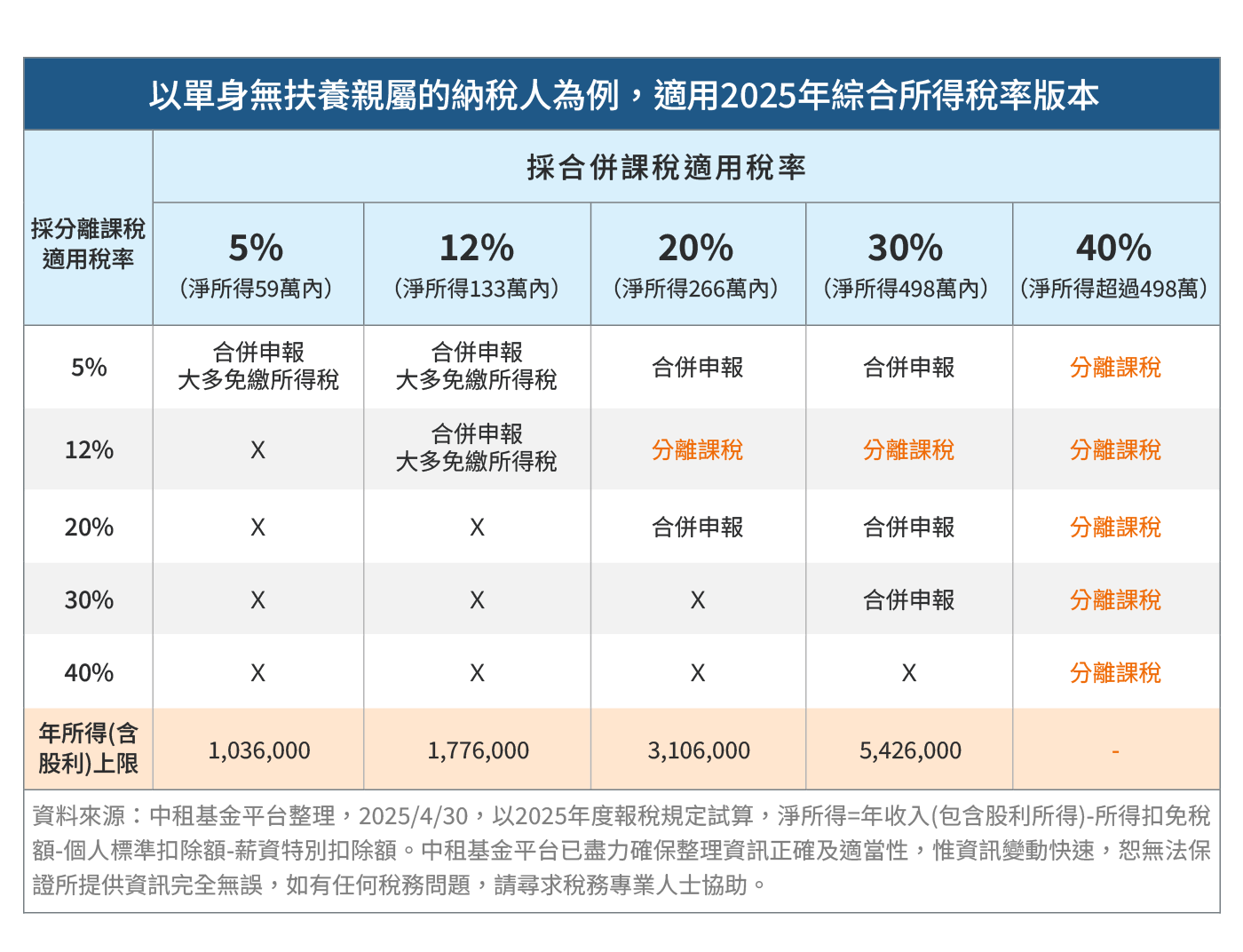 蘇皓毅也強調,最有效的節稅方式仍是投資累積型基金或海外基金,這類投資有機會完全免稅。不過,由於個人所得狀況各異,實際應納稅額仍應以結算申報為準。