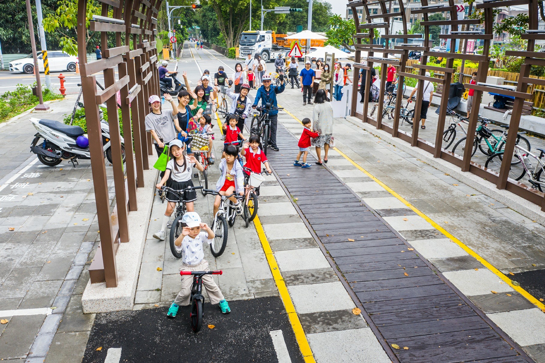在北香湖公園,「綠豆仁遊戲場」則以在地特色設計攀爬設施,兼具挑戰性與安全性,深受家長青睞。而全新啟用的「穿城之水 水綠廊道」,沿著百年古圳道將圳延展,環境平坦、綠意盎然,適合全家散步慢行、親近自然。