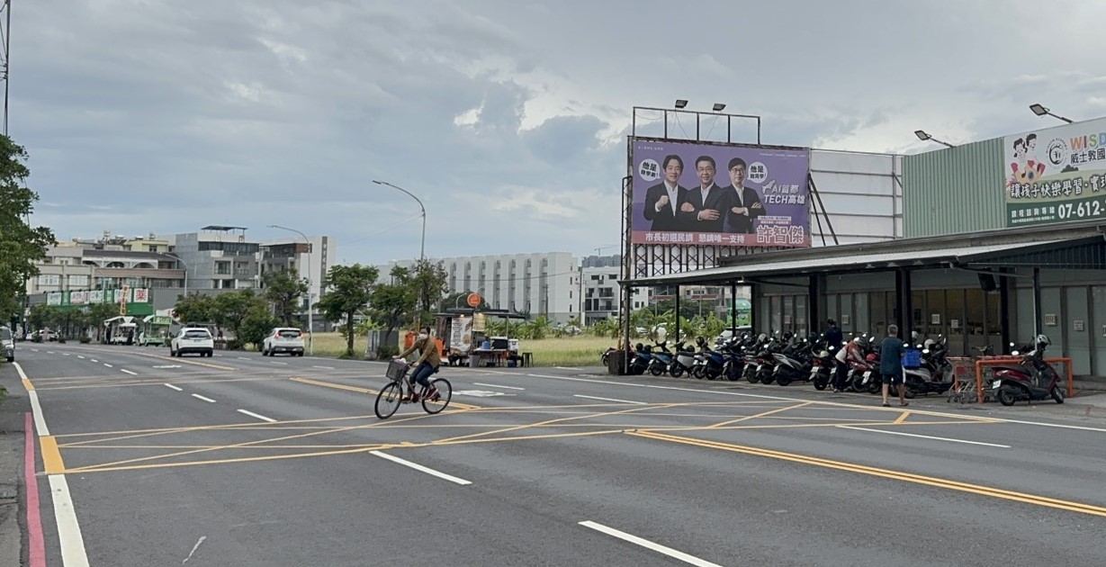 圖說: 近日高雄街頭出現許智傑合體賴、邁的新看板,引起路人側目。(圖片來源:許智傑辦公室提供)