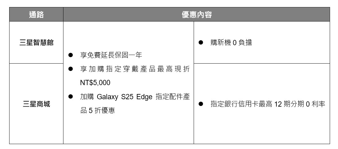 三星也公布了【Galaxy S25 Edge預購方案】