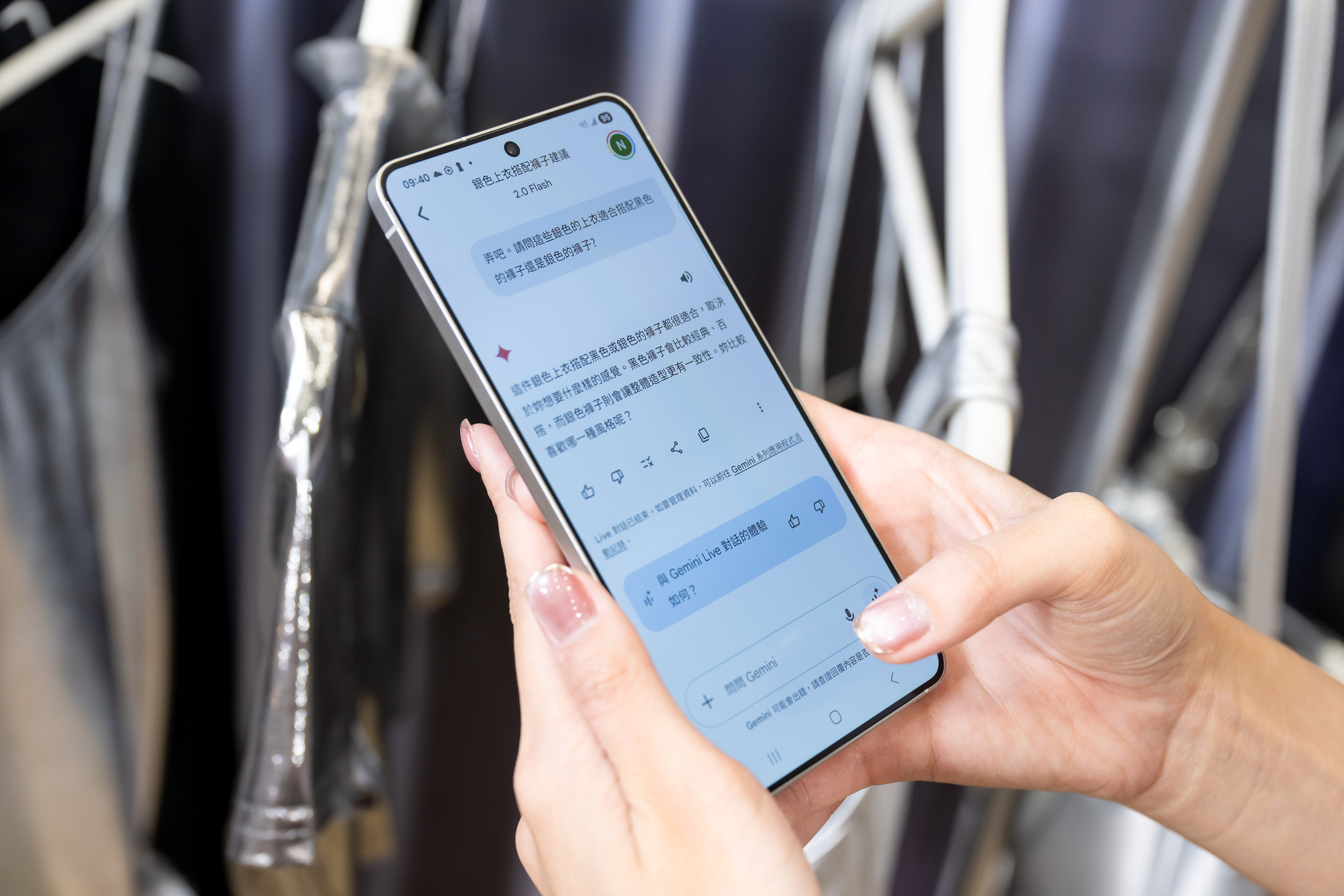 Galaxy S25 Edge也將Gemini最新科技獻給廣大用戶。例如借助Gemini Live 最新的AI即時視覺對話功能(如上圖,三星提供),使用者能針對螢幕畫面或眼前所見的周遭事物,與GeminiLive展開即時對話互動。