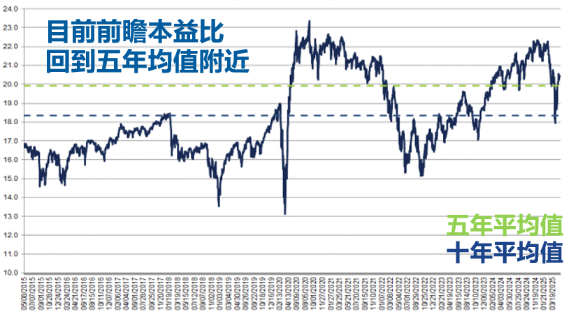 另外值得注意的是美股投資價值再浮現,第2季以來的股市波動,使美股未來1年的前瞻本益比已回到5年均值附近,從估值來看更顯合理。