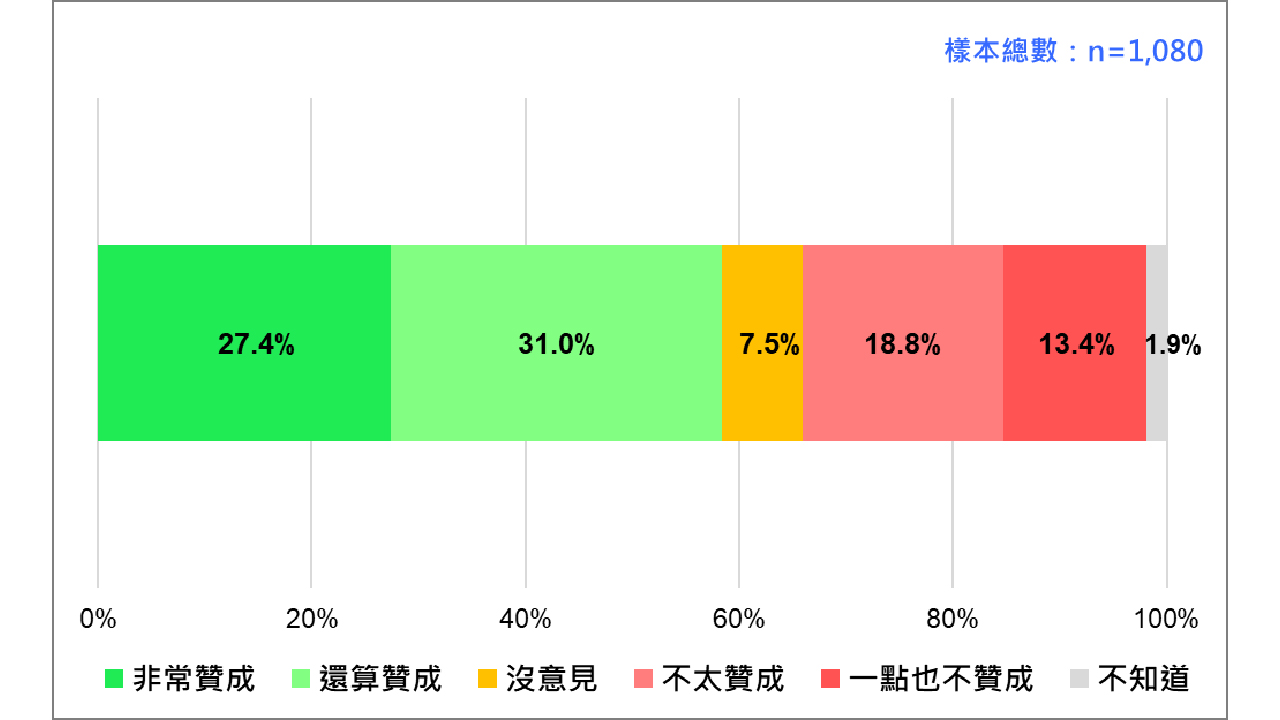 台灣民意基金會今(16)日公布最新民調指出,針對立法院近期通過的《紀念日及節日實施條例》修法──新增「五一勞動節全國放假」及四個國定假日,共4+1日,多數國人表達支持立場。調查顯示,58.4%民眾表示贊成,其中「非常贊成」27.4%、「還算贊成」31%;不贊成者占32.2%。