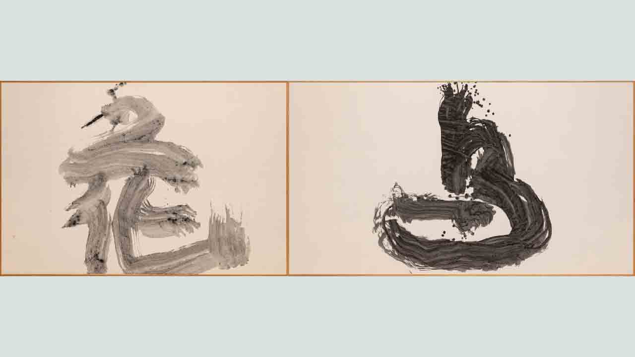 本次展出的四件井上作品,皆為井上有一創作巔峰時期—1966-1978年的重要代表作品。此時的他開始大膽實驗筆墨材料,將動物膠混入墨中並冷凍一夜製成「凍墨」,進而創造出水墨自然分離、飛白與立體效果兼具的獨特視覺語言。由於此技法難以控制、創作難度極高,使得該系列作品極為稀少,尤顯珍貴。