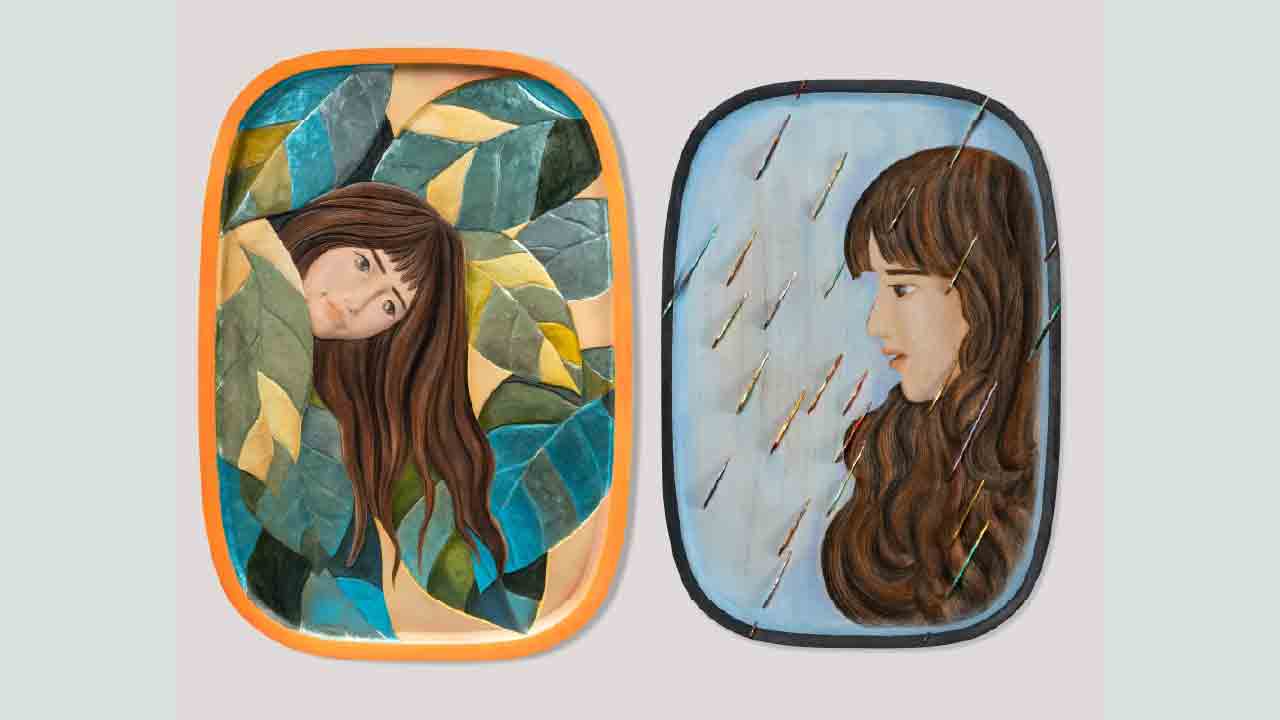 ↑圖說:(左)沛│2025│110× 78 cm│樟木、銀箔、壓克力顏料、(右)虹雨│2025│38× 55 cm│雲檜、銀箔、壓克力顏料。(圖片來源:寶吉祥藝術中心提供)