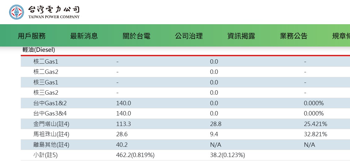 蔡志孟說,今日日尖峰發生在13:22,負載3191萬瓩,備轉容量(率)為1065萬瓩(33.39%),仍在原預估日尖峰10%以上、夜尖峰7%以上。