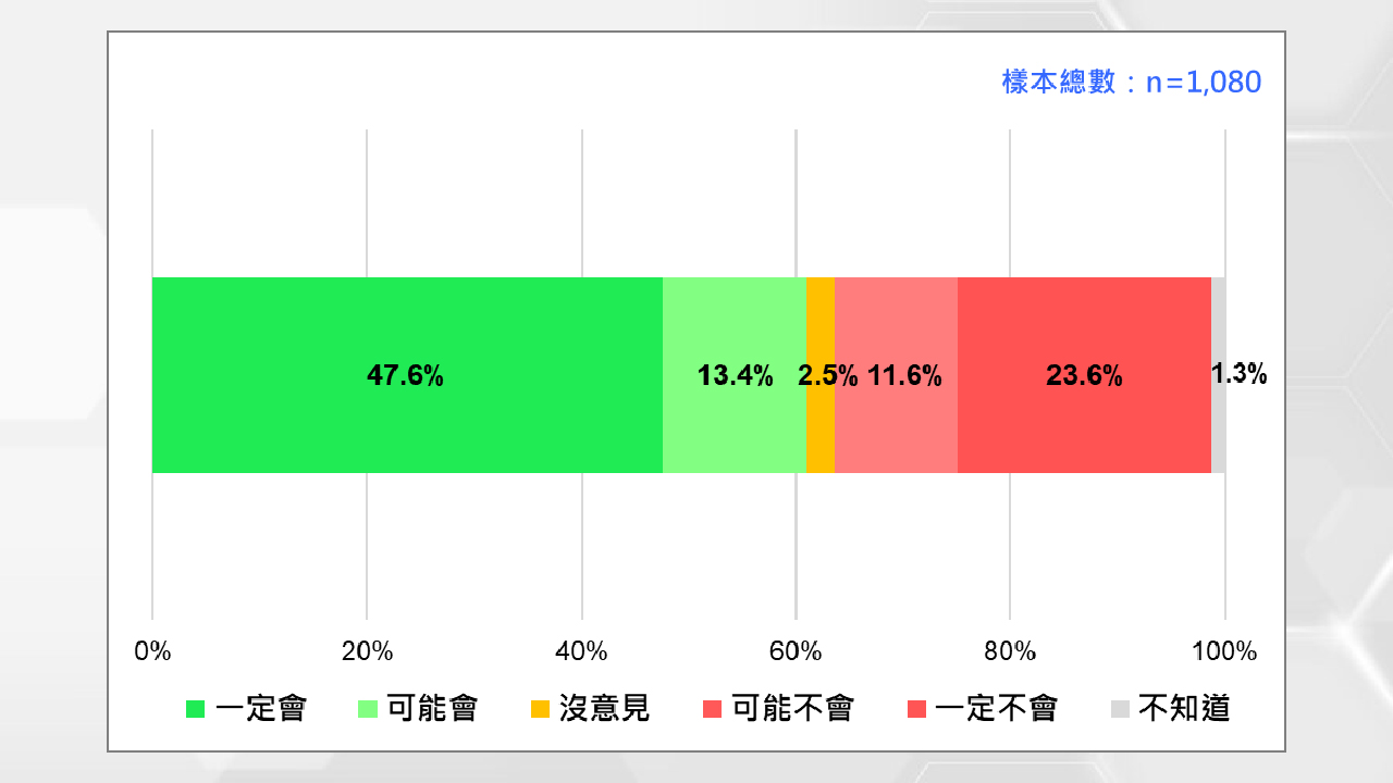 面對即將進入的第三階段罷免投票,有47.6%民眾表示「一定會投票」,13.4%「可能會投」,顯示出有高達六成選民可能出席投票。其中支持大罷免者的投票意願遠高於反對者,分別為86%與50%,若未來選民動員情勢延續,恐對反罷免方構成不利衝擊。