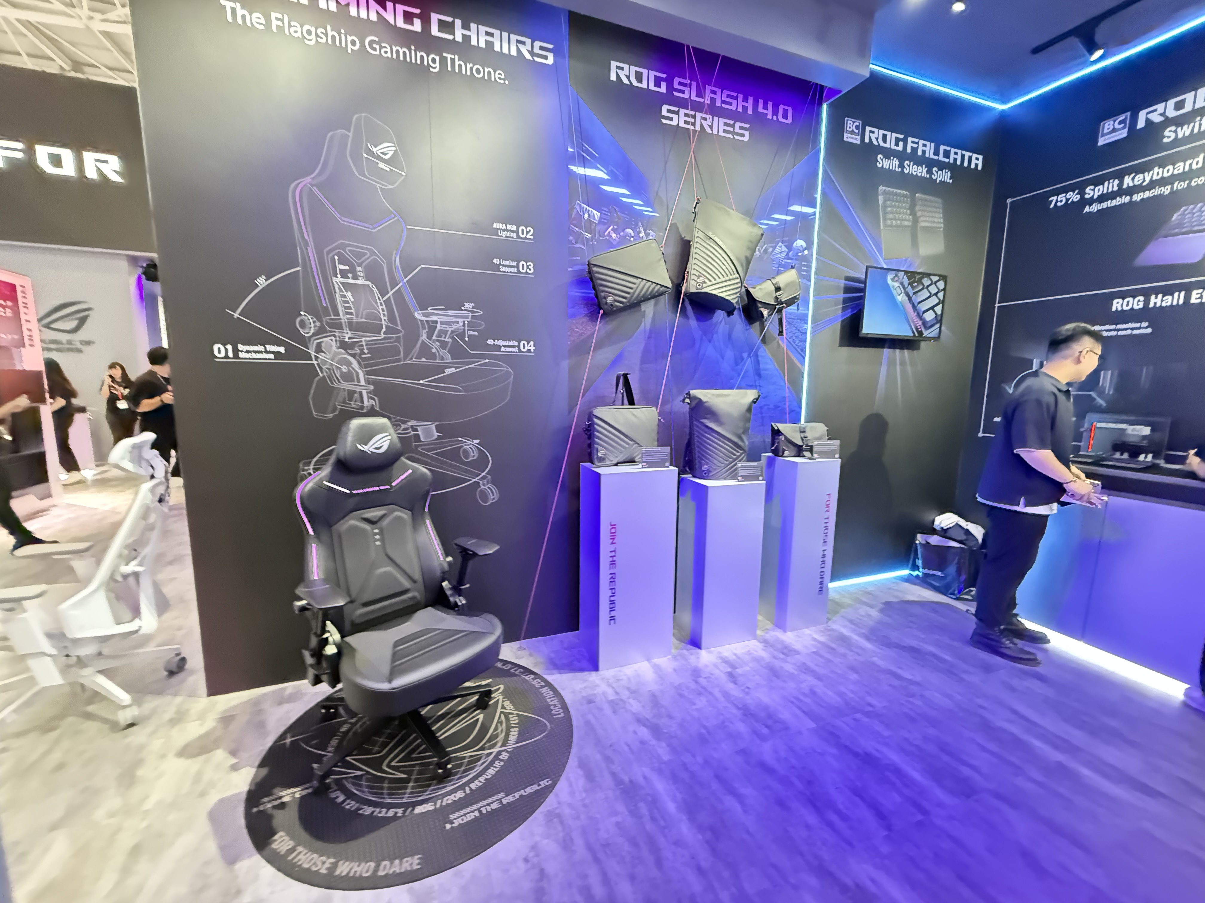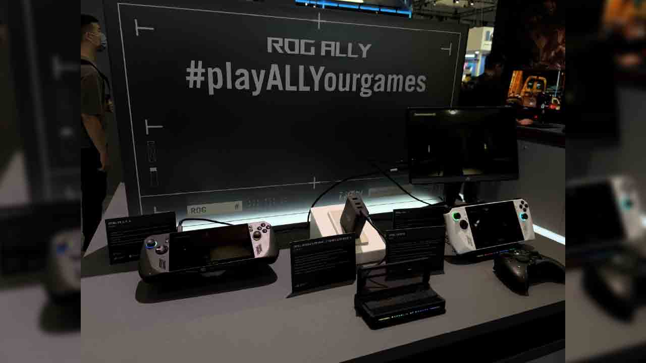 華碩也展出電競周邊商品(如上圖,記者李錦奇攝影),以及ROG Ally電競掌機與專用基座(如下圖,記者李錦奇攝影),可以擴展外接螢幕。