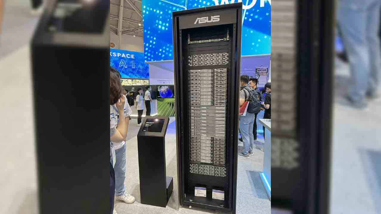 另外,華碩也展出搭載輝達GB300 NVL72的AI POD(如下圖,記者李錦奇攝影),展場人員表示,預計第三季推出,市價大約得要價1億元。
