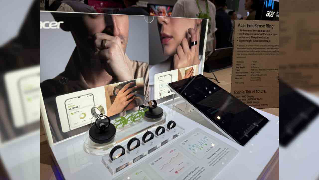 另一項智慧戒指(如下圖,記者李錦奇攝影),主打健康功能,可記錄使用者的睡眠情況,以及心率等等數據,預計8月上市。