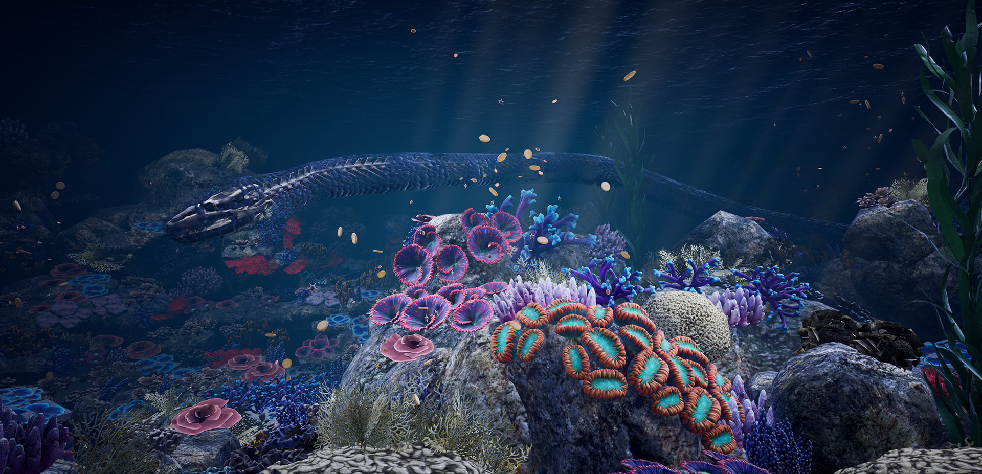 ↑圖說:互動VR《星砂》則以創新互動體驗,帶領觀眾走進虛擬的海洋祕境。(圖片來源:高雄市電影館提供)