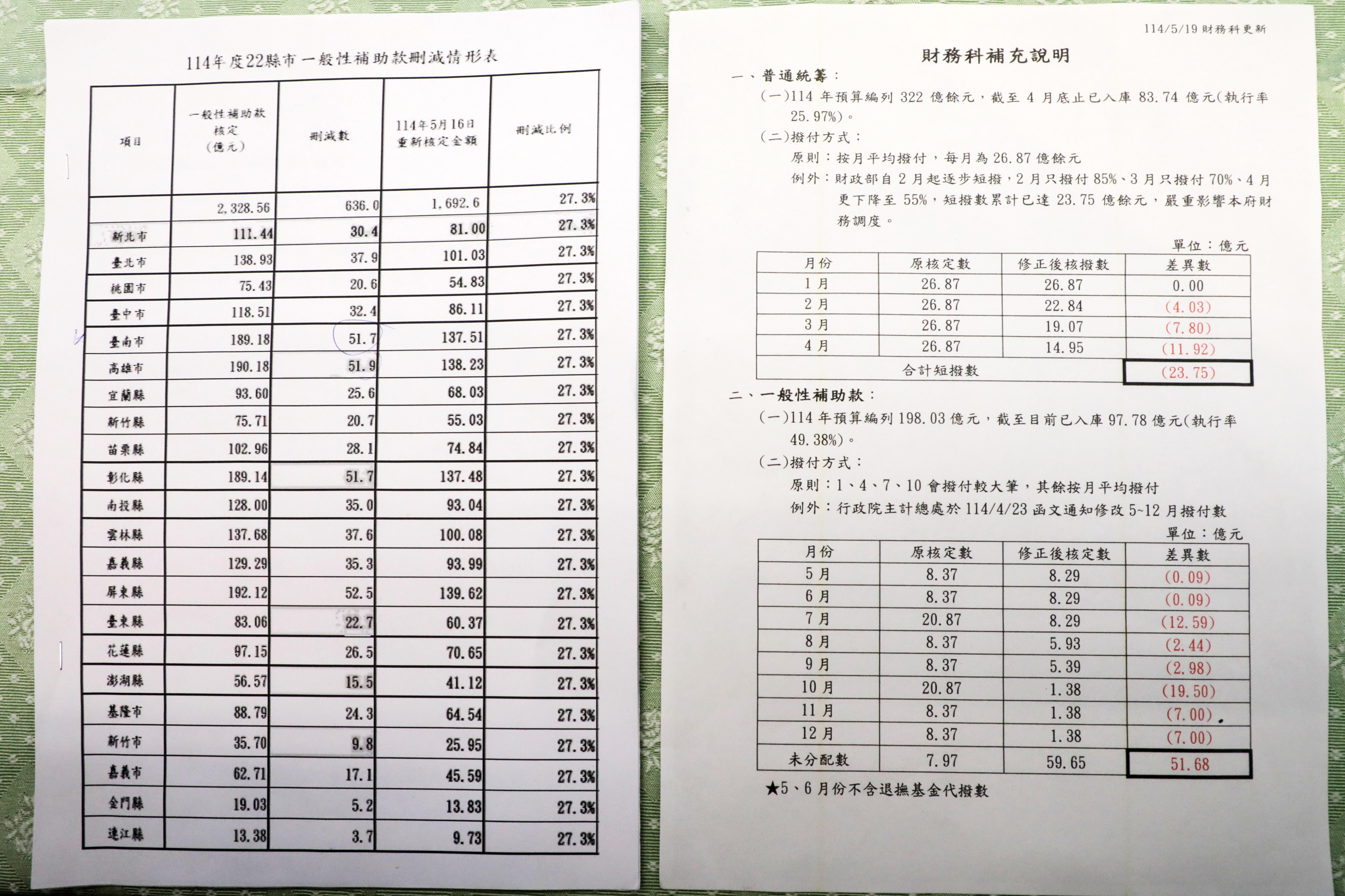 圖說:財政部補助說明資料顯示,台南市不僅一般性補助款被刪,1至4月統籌分配稅款也短收23.75億元,南市府面臨超過75億元的財政缺口,市政建設與公共服務勢必受影響(圖片來源/台南市政府提供)
