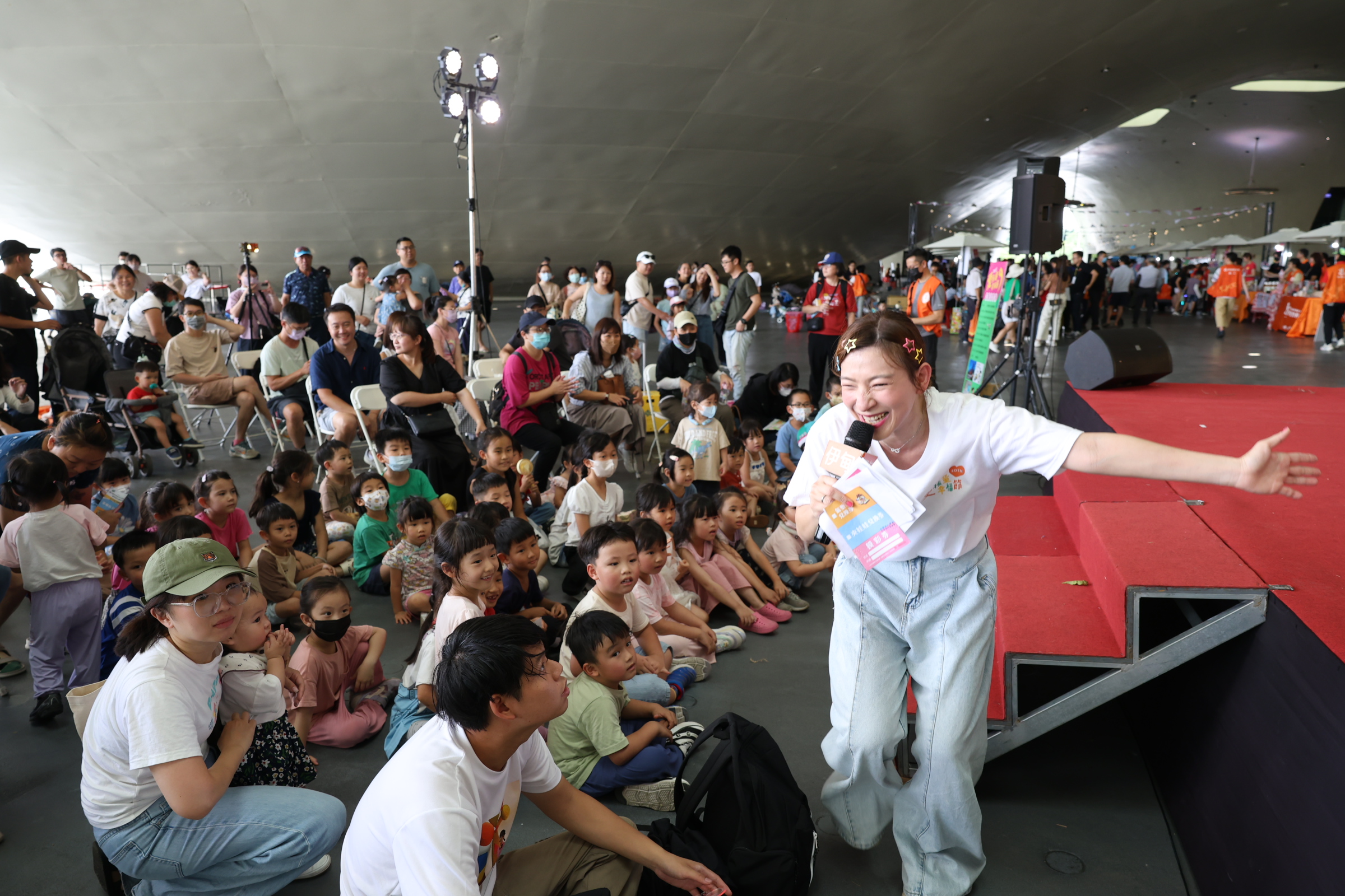 除了豐富攤位外,活動也邀請深受兒童喜愛的表演團體共襄盛舉,包括「謝欣芷的愛唱歌劇場」、「麻咕麻酷創作劇團」,以及「YOYO家族明星」,輪番上陣炒熱氣氛。現場還出現人氣人偶「大蜜柑」,與孩子們熱情互動、擁抱合影,帶來滿滿驚喜。