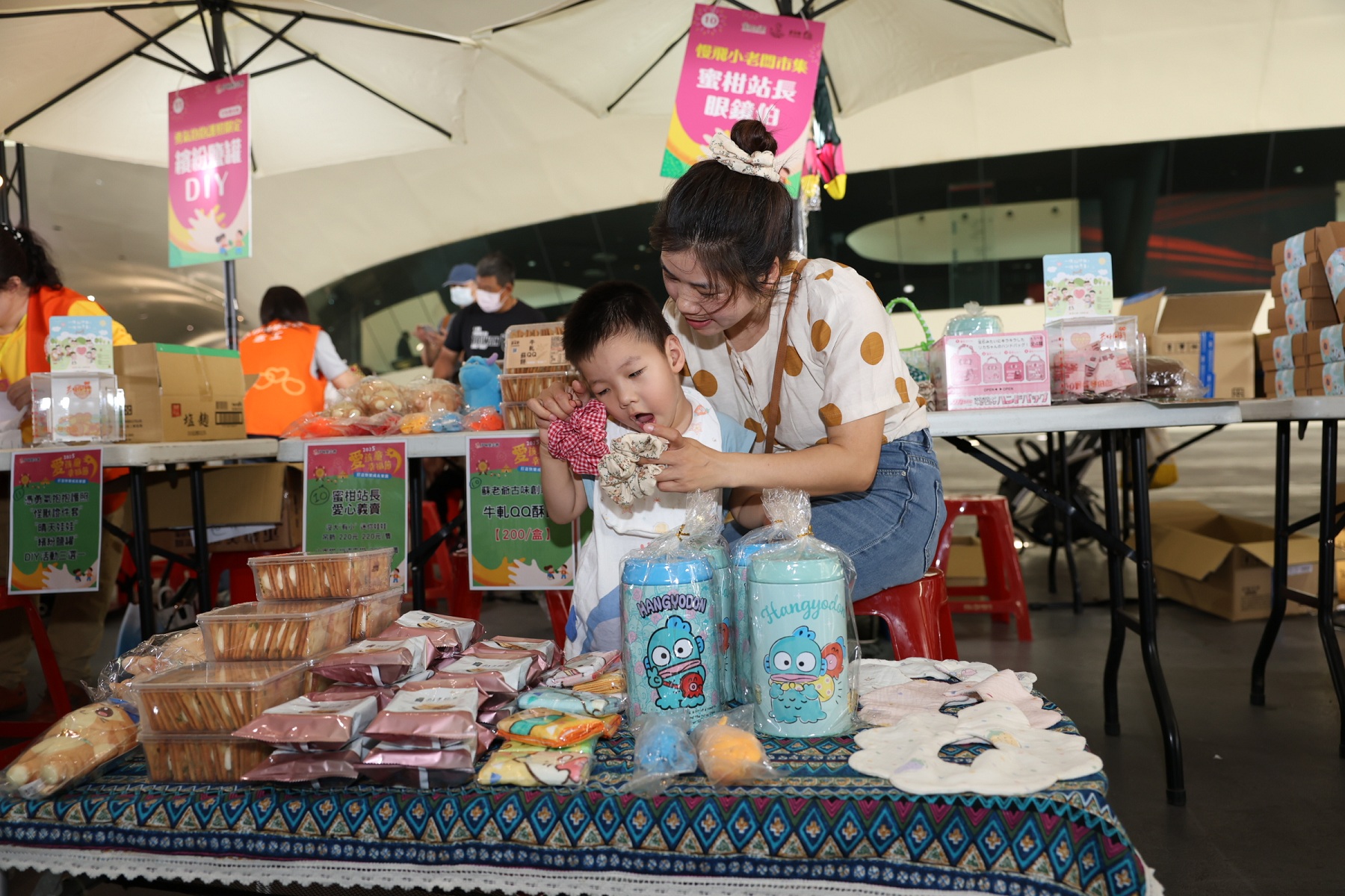 ↑圖說:慢飛天使牛牛和媽媽一起參加愛心小老闆市集(圖片來源:伊甸基金會提供)