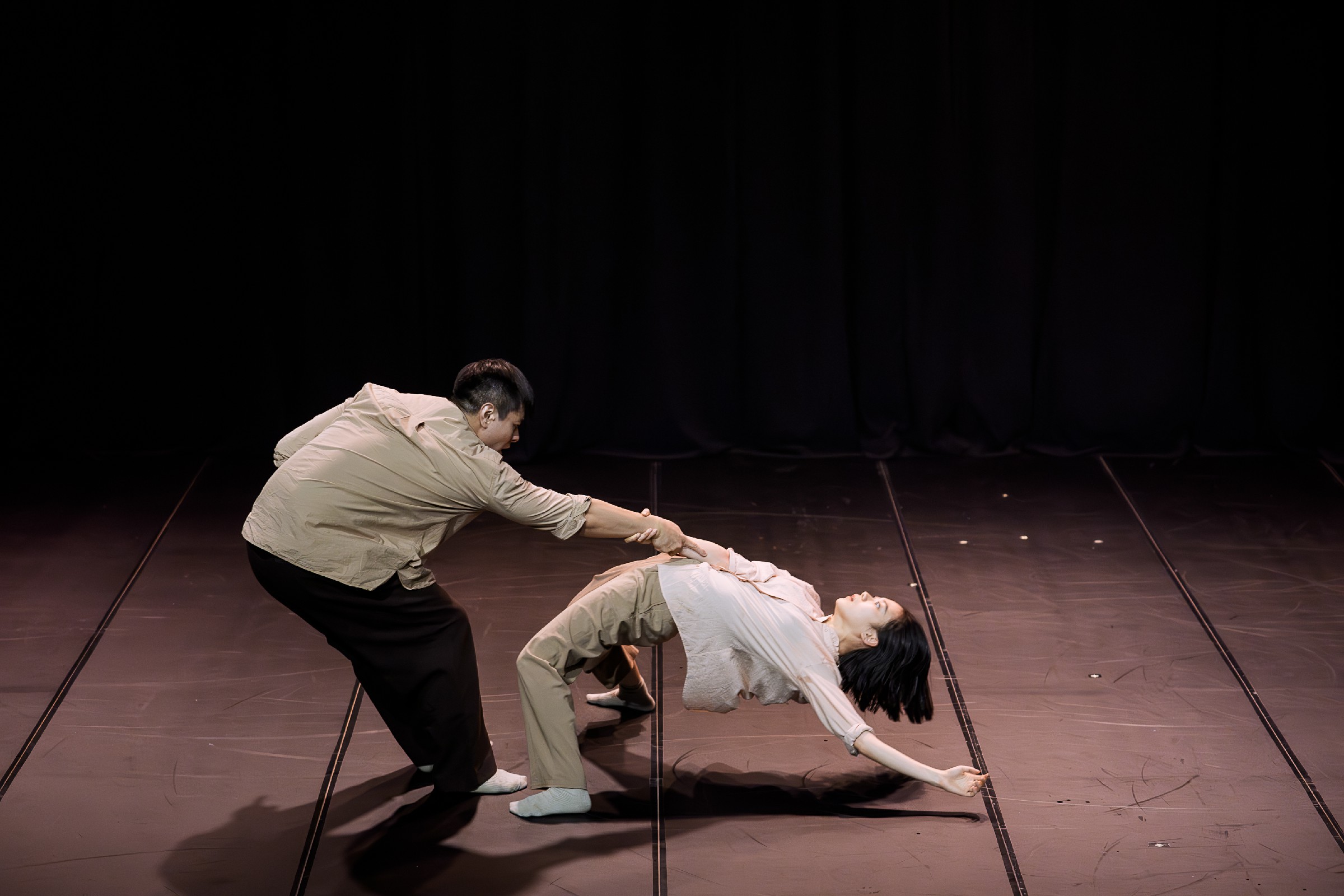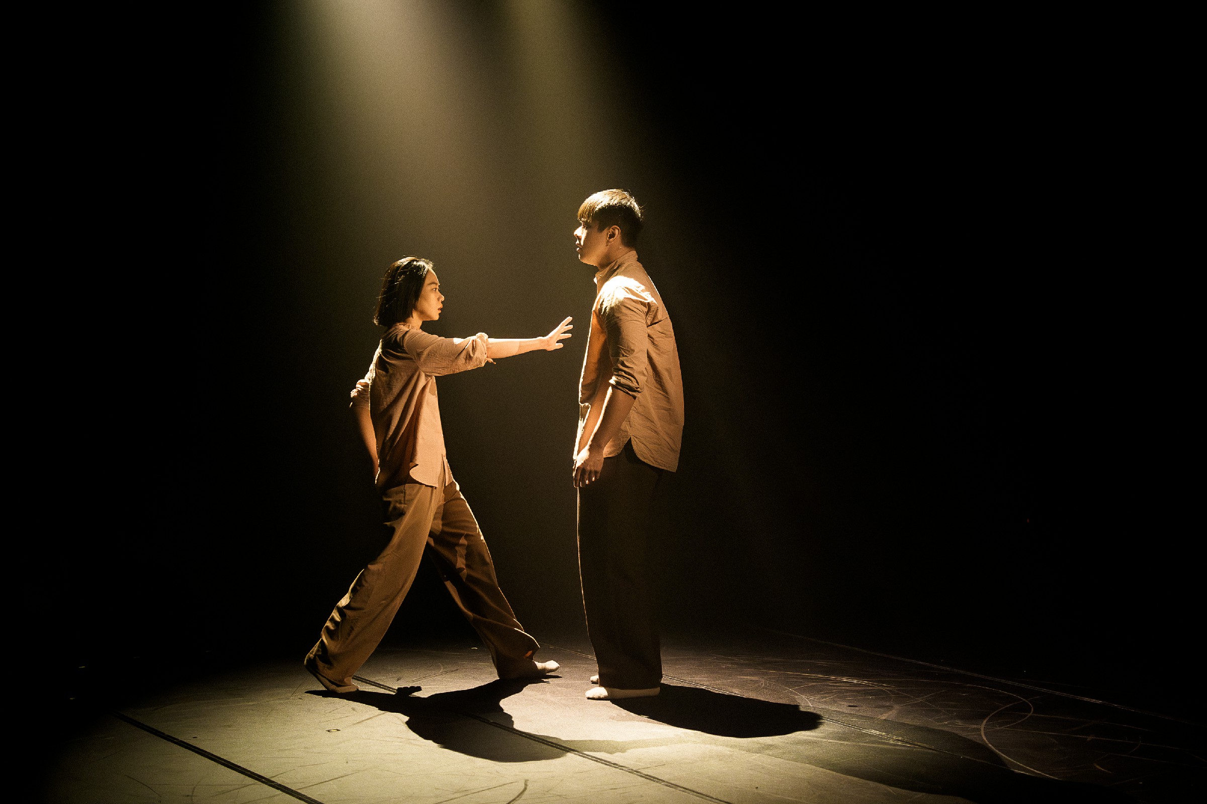 編舞家賴翃中以其一貫細膩的身體語言創作,將生活中簡單的「推開」與「拉近」動作轉化為情感與哲理的探索。在這支雙人舞中,兩位舞者如磁極般交錯牽引,時而親近、時而錯身,呈現愛情、家庭與人生關係中的情感流動與選擇困境,也折射出東方太極哲學與現代心理思維的融合。