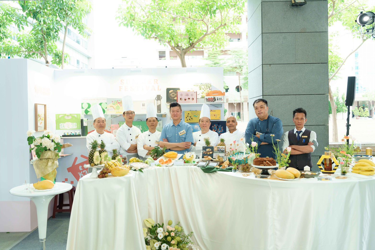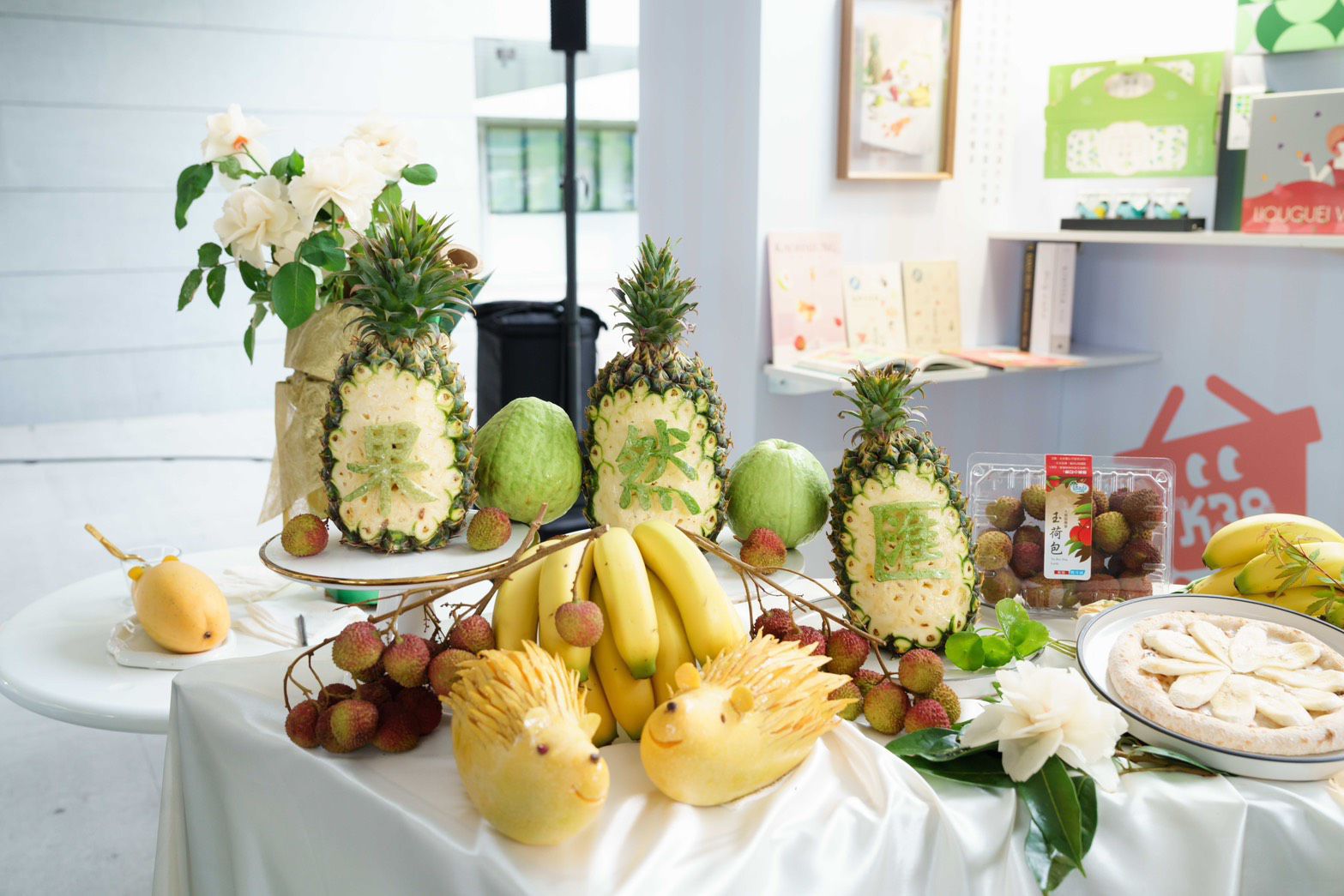 會場更邀請果然匯主廚林純谷與林繼崙現場進行果雕創作,將鳳梨、芒果、香蕉等水果巧手雕刻為活潑可愛的「水果小夥伴」及細膩如畫的「金色花園」。李懷仁也親自參與果雕過程,將金煌芒果化身為造型逗趣的小刺蝟,現場驚喜不斷、笑聲連連。