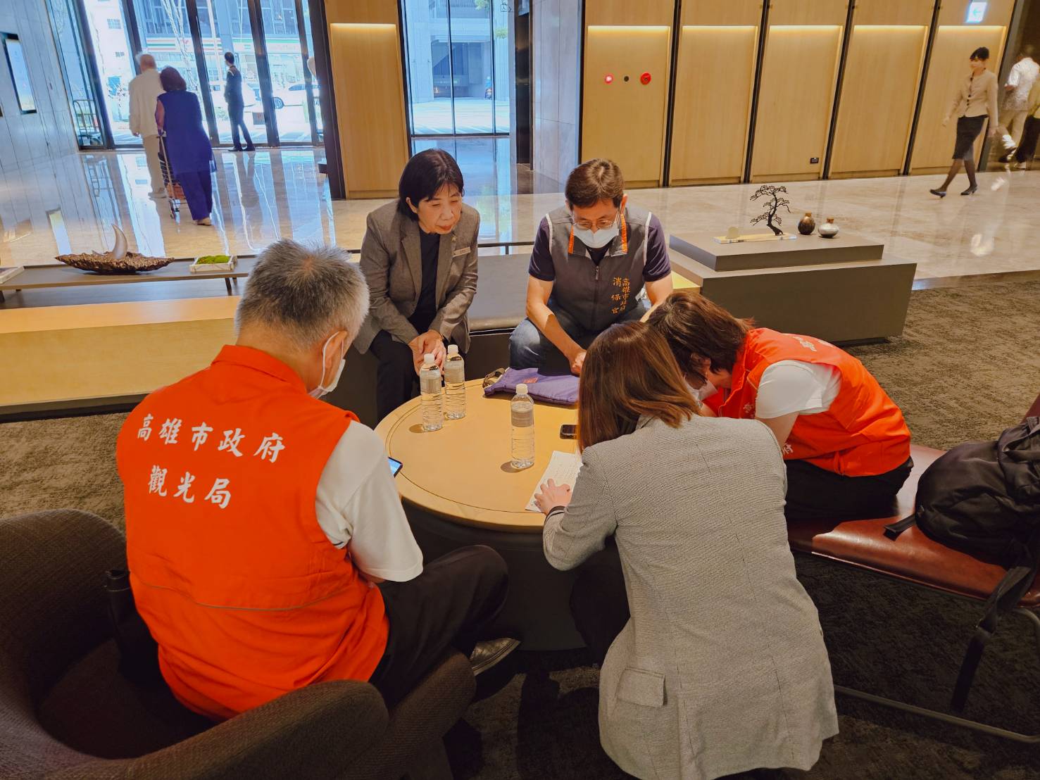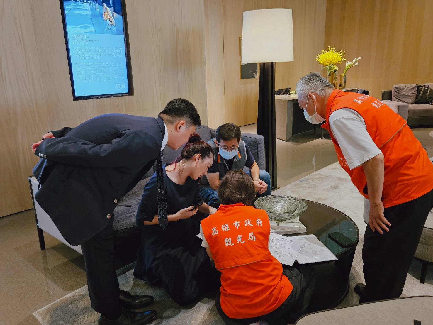 ↑圖說:高雄近期新設觀光飯店或五星級旅館,設施新穎完善、地點交通方便且服務品質優良。圖為在水京棧國際酒店執行房價稽查。(圖片來源:高雄市觀光局提供)