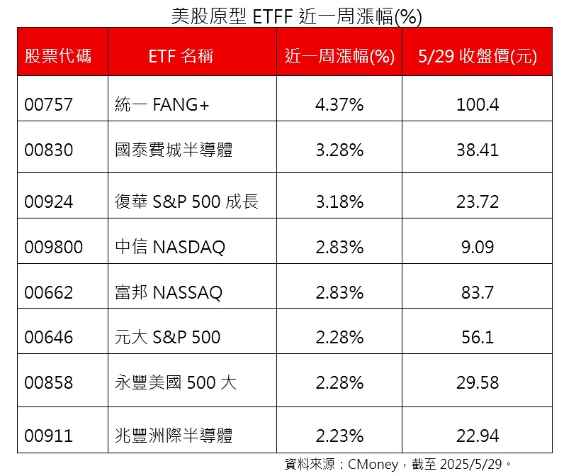 拉長時間來看,00757近5個交易日(近一周)上漲4.3%,其他包括國泰費城半導體(00830)、復華S&P 500成長(00924) 漲幅也超過3%。