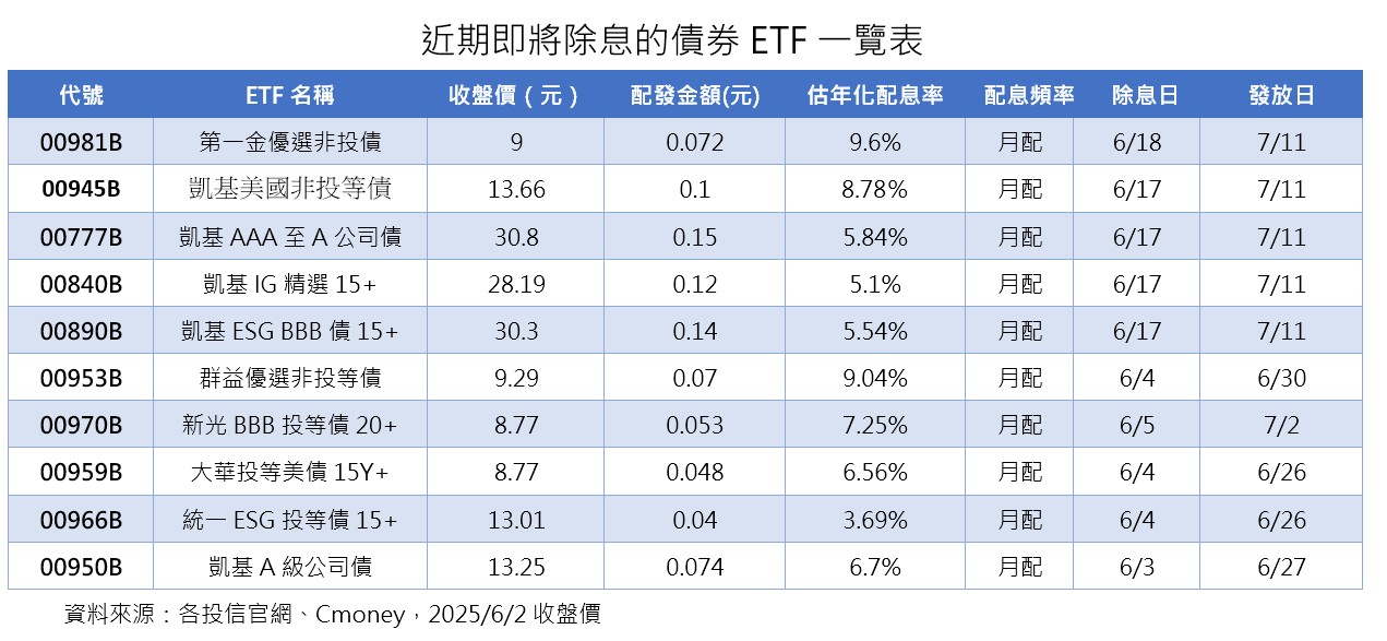 月配息債券ETF六月除息出爐!00950B今打頭陣 一表掌握