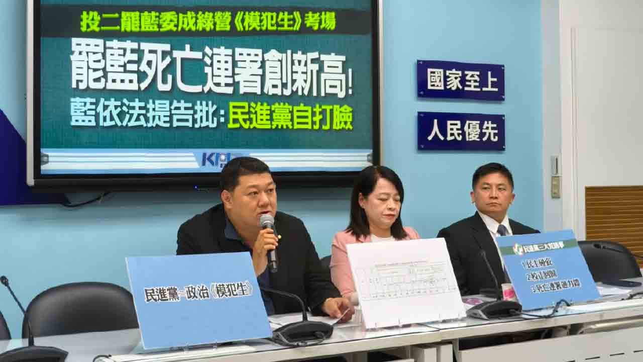 國民黨團副書記長許宇甄與立委游顥、吳宗憲5日召開記者會,針對民進黨主導的南投第二選區罷免案提出嚴正指控,指出該案涉嫌「提議人與聯署人重複」「死亡連署」等違法情形,聯署份數原本不足,但因不當手段才勉強成案。國民黨認為整起罷免案根本「不該成案卻硬拗通過」,嚴重損害選舉公正,會後也前往台北地檢署提告,要求檢調單位依法辦理。