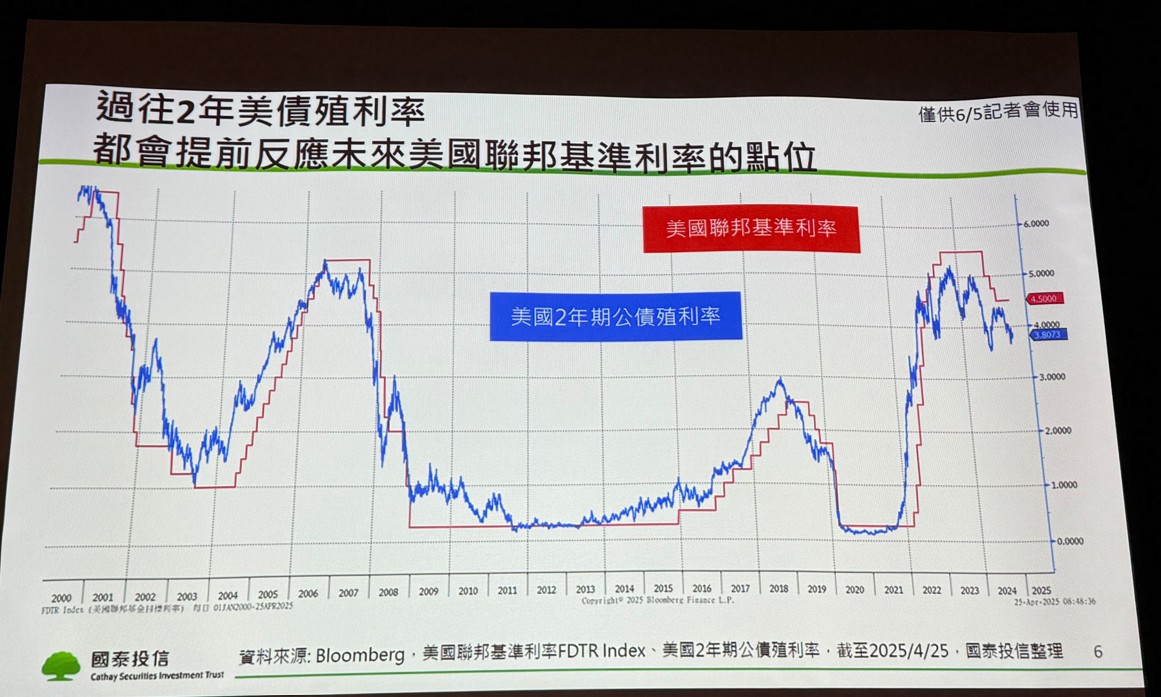 國泰投信全球經濟與策略研究處副總王誠宏指出,排除美元資產危機,美國經濟目前是持續軟著陸,研判陷入衰退機率較小;同時由於美國景氣已經下行,買氣趨於保守,即使未來關稅戰再次升溫,業者將關稅轉嫁消費者的機率相對有限,因此,第三季高機率廠商將出現較高庫存,導致獲利下降,生產有過剩現象,估計9月、12月會再降息,明年美國經濟也有機會全面回到溫和成長。