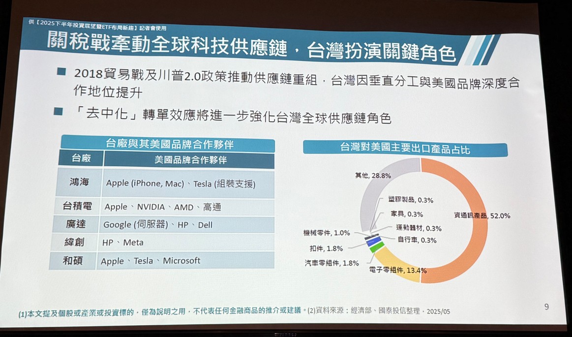 「國民ETF」00878經理人、國泰投信量化投資部協理游日傑提到,1930年代各國築起貿易高牆,但目前結構跟當年不同,預期本次不致陷入經濟蕭條;AI應用有助收入提升,成本減少。