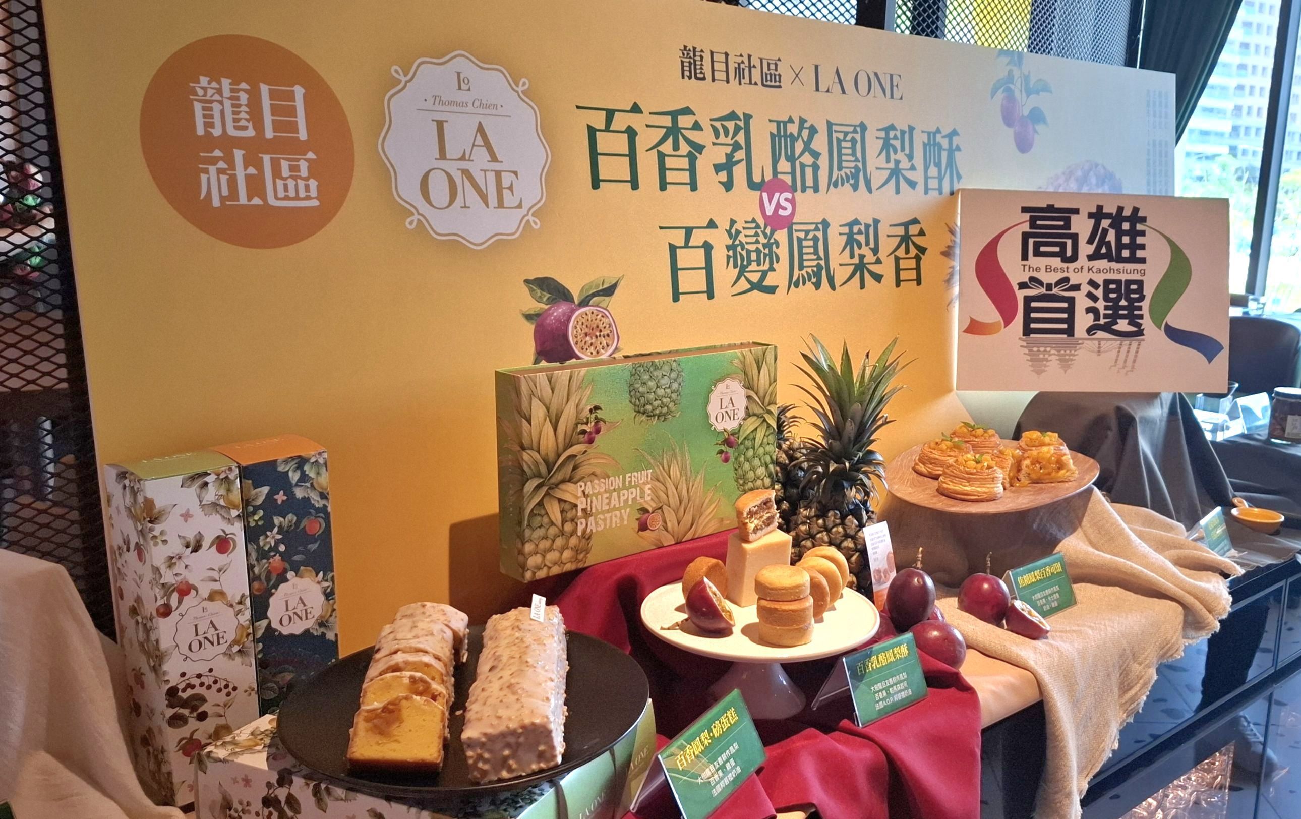 圖說:LA ONE與大樹區龍目社區共同研發「百香乳酪鳳梨酥」、「百香鳳梨磅蛋糕」、「百香鳳梨布雪夾心」及「百香鳳梨丹麥可頌」等四款風味糕點。(圖片來源:高雄市農業局提供)