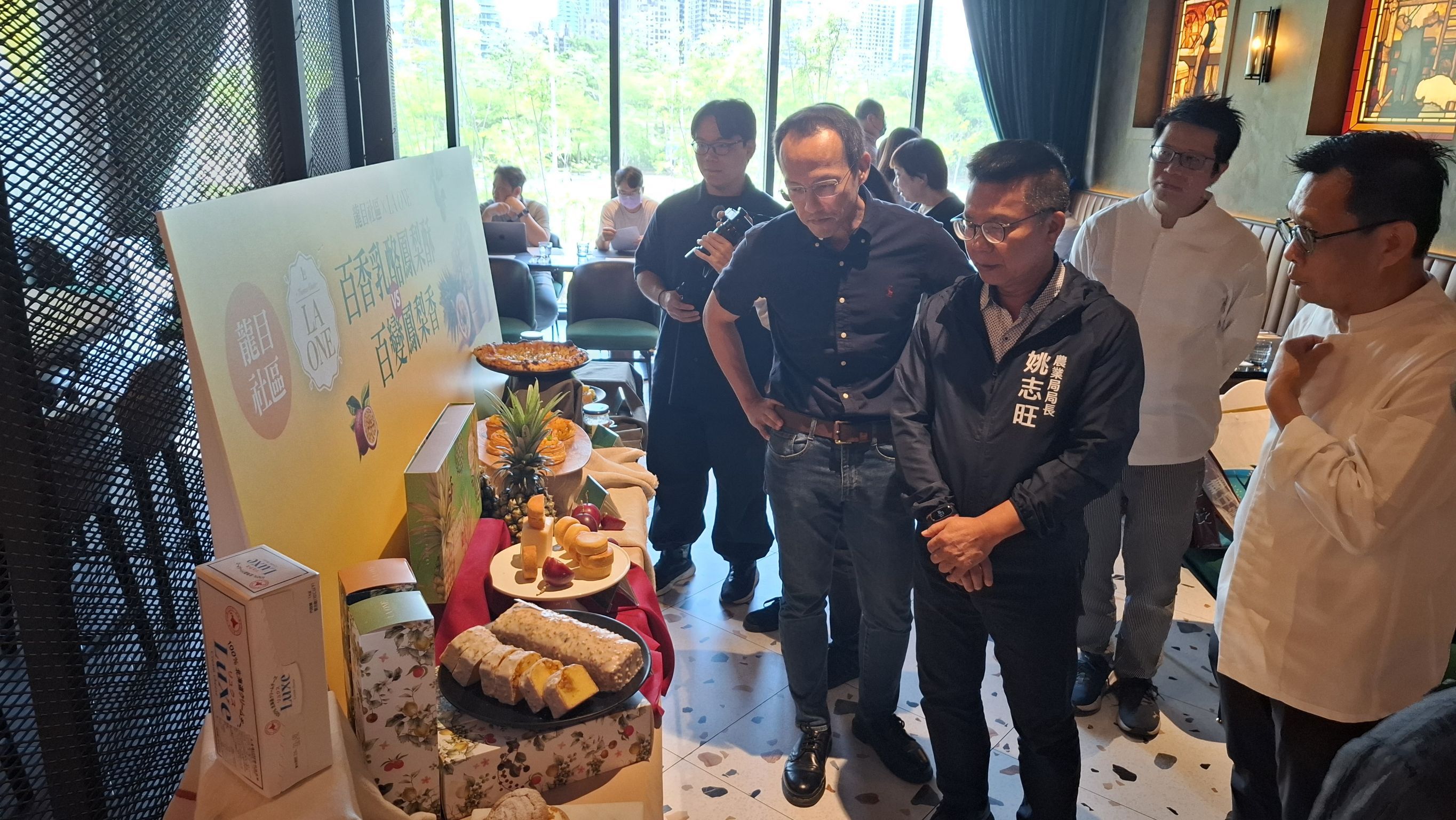 為推動農村產業創新轉型,強化農村與企業合作鏈結,高雄市政府農業局於114年度持續推動「根留農村」計畫,導入企業資源與品牌行銷,協助社區開發在地農產特色伴手禮,創造社區農民經濟收益。6日由天才餐飲集團與本市大樹區龍目社區發展協會於LA ONE烘焙坊美術館店共同舉辦產品發表會活動,正式推出由社區與餐飲集團共同研發的「百香乳酪鳳梨酥」、「百香鳳梨磅蛋糕」、「百香鳳梨布雪夾心」及「百香鳳梨丹麥可頌」等四款風味糕點。農業局局長姚志旺出席產品發表會活動,並對社區幹部、企業及相關輔導團隊合作成果表達高度肯定與感謝。