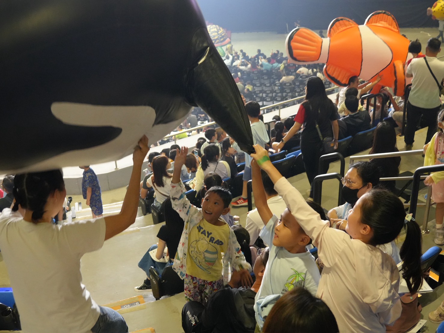↑圖說:紙風車劇團海底生物與全場觀眾熱情互動(圖片來源:海洋委員會提供)