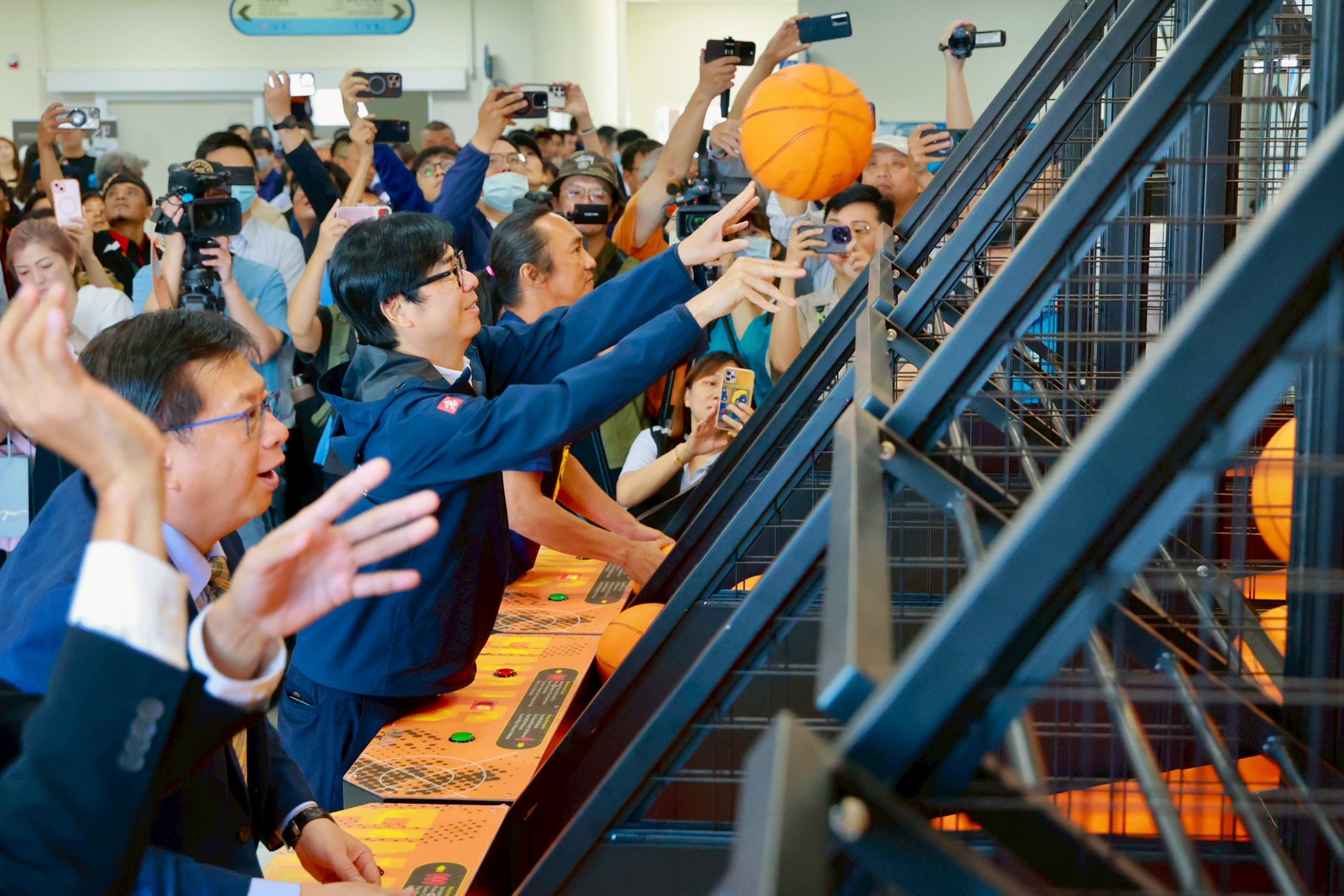 ↑圖說:陳其邁與與會貴賓也在投籃機小試身手,交流情誼。(圖片來源:高雄市政府提供)
