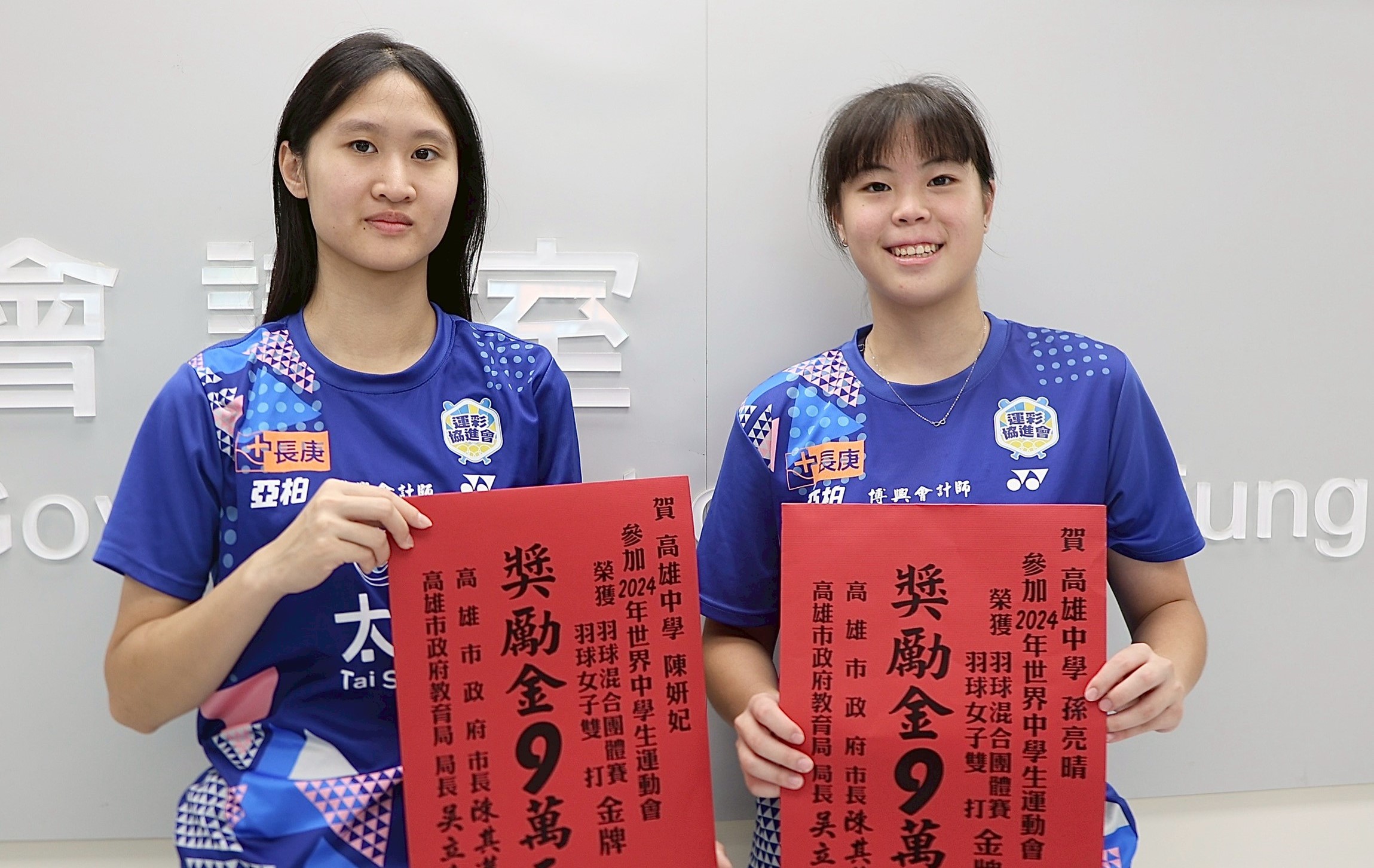 圖標:雄中羽球雙姝孫亮晴、陳妍妃 2024中學生世運會混團逆轉中國奪金(圖片來源:高雄市教育局提供)