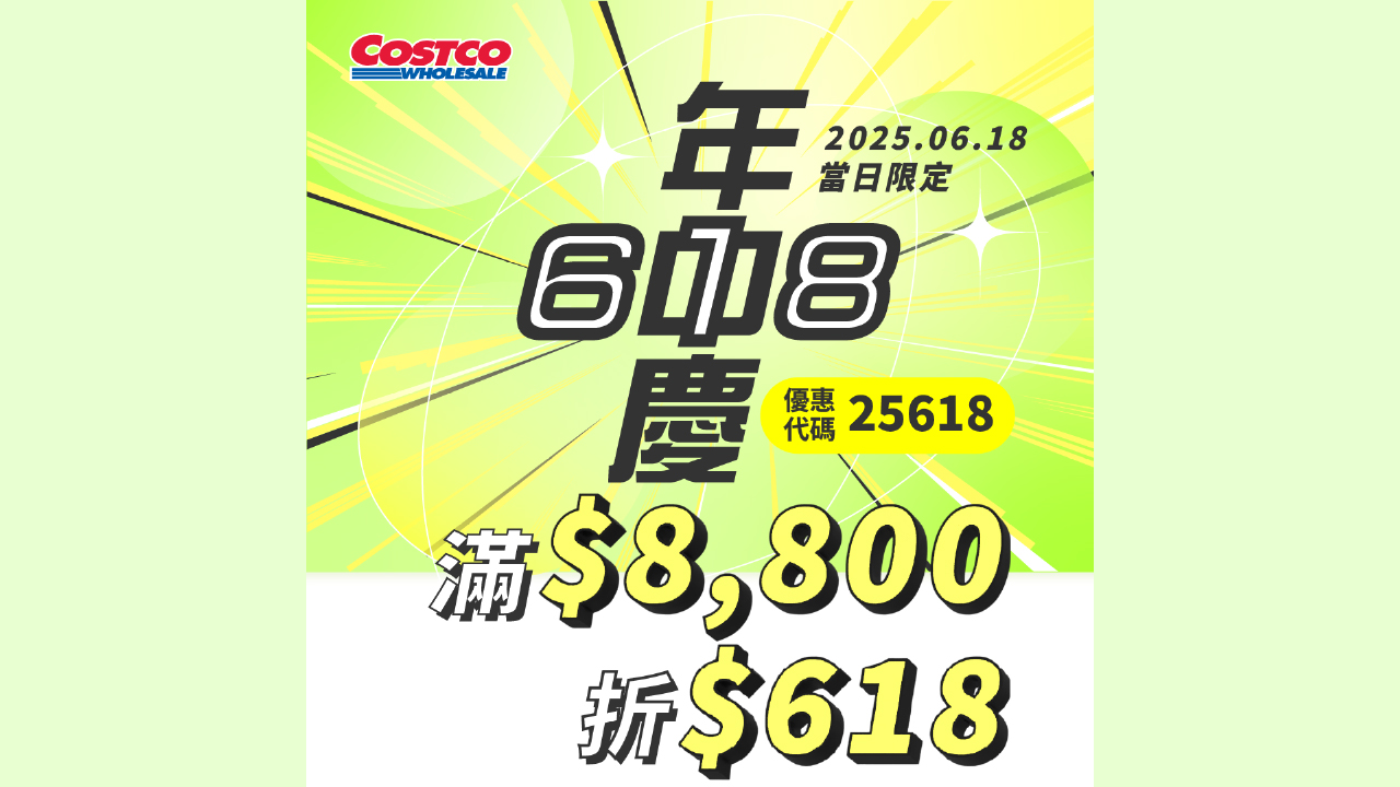 Costco 618線上年中慶開跑 滿額現折618元+3%刷卡回饋